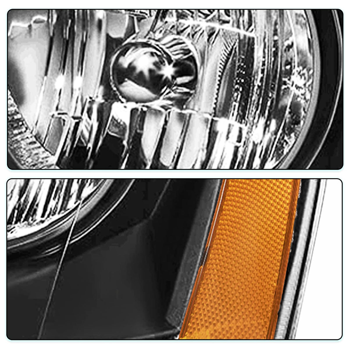 Tusdar Headlight Assembly Compatible With 2008-2014 Dodge Avenger Halogen Driver And Passenger Side Black Housing With Amber Reflector