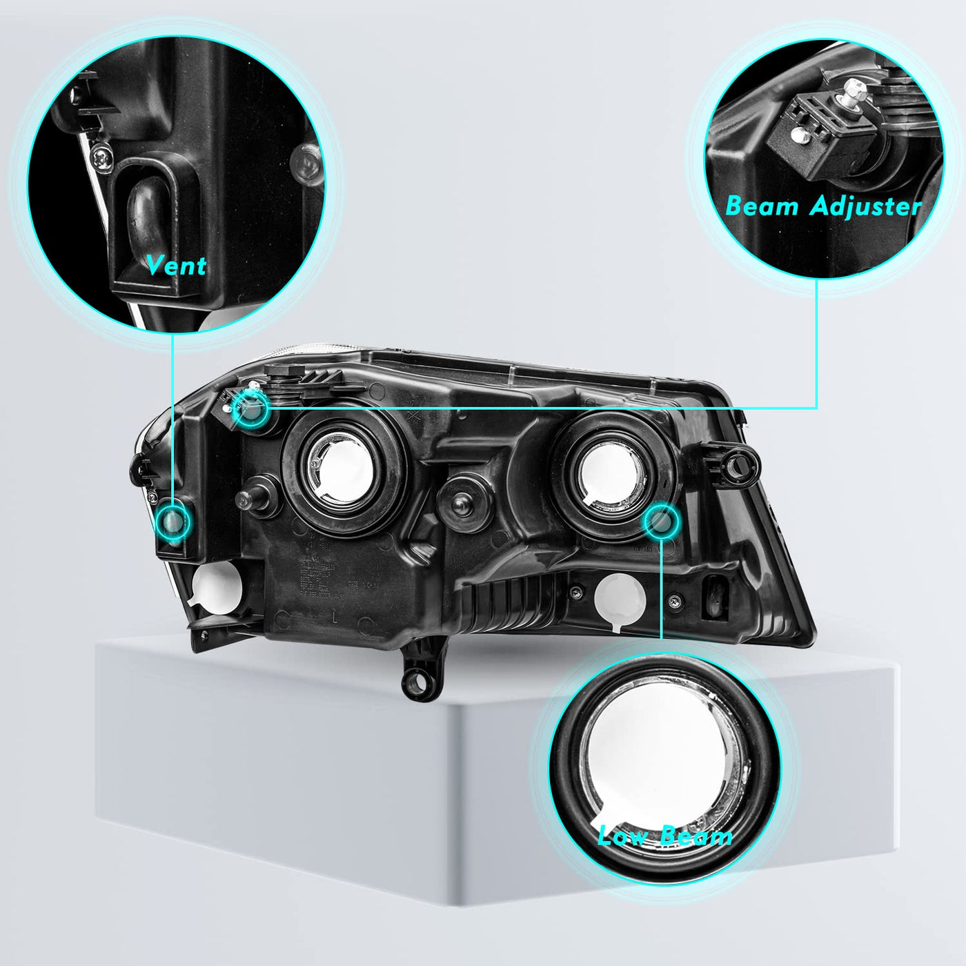 Q: How does the design of this headlight assembly improve visibility during night driving?A: The TUSDAR Headlight Assembly features a premium design that enhances brightness, allowing for better visibility on the road at night or in extreme weather conditions. This design helps reduce the risk of traffic accidents.