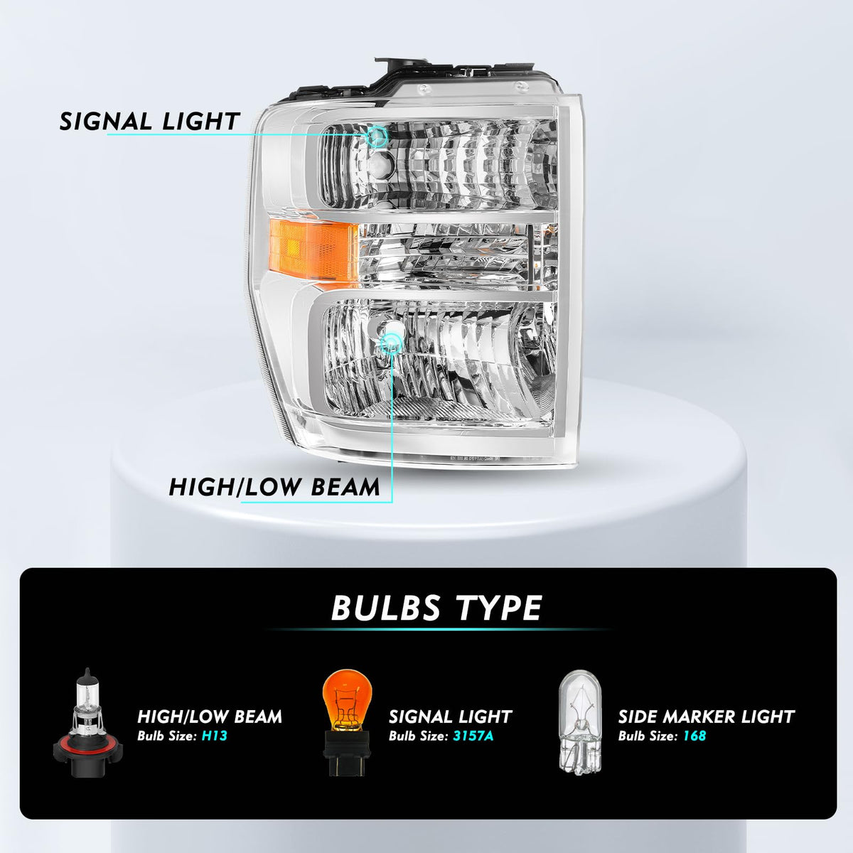 ?Suitable Models?Headlights Assembly Compatible With Econoline Van 2008-2014 Ford E150, 2008-2014 Ford E250, 2008-2021 Ford E350 Super Duty, 2008-2021 Ford E450 Super Duty, 2016-2021 Ford F650 Truck, 2016-2021 Ford F750 Truck. Fit With Aero Style Single Beam Headlight Model; Do Not Fit With Sealed Beam Headlight Model. Bulbs Are Not Included. High Beam / Low Beam Bulb Type: H13; Signal Light: 3157A; Side Marker Light: 168. | ?Premium Design?The Special Surface Coating Makes The Lens Scratchproof In Compliance With Dot & Sae Regulations; Plug-N-Play Operation, Direct Original Equipment Replacement For The Stock Unit; Fully Sealed, Waterproof, Dust Resistant And Corrosion Resistant. | ?Visibility Higher & Driving Safer?This Headlight Helps To Increase The Brightness So You Can See The Road Clearly At Night Or In Extreme Weather. Better Visibility Can Help You Avoid Traffic Accidents And Make Your Driving Safer. | ?Replacement?Oem Part Number: Ac2Z13008C. Partslink Number: Fo2503249. | ?Warranty?This Headlight Assembly Will Come With 30 Days Hassle-Free Return & 1 Year Unlimited Replacement Promise. If You Don'T Like It, Just Return It And Get A Full Refund. All We Wanna Do Is To Make You Love Tusdar Products.