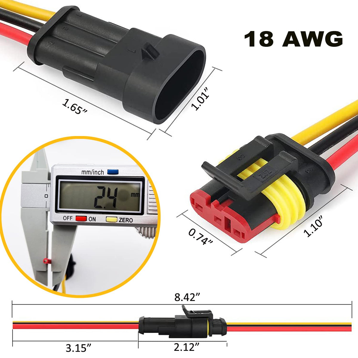 Twippo Waterproof Wire Connectors: Gm electrical connectors, dustproof, waterproof, great for high sensing performance requirement electrical system. Automotive wire connectors are suitable for motorcycle, car, truck, scooter, jet ski, boat, etc. Features of 18 AWG Automotive Connectors: 1. Package includes 26 sets quick connect wire connectors, different types of quick connect electrical parts to meet different usage needs. 2. Wire connectors automotive are made of high quality plastic material with good waterproof function safety. 3. Waterproof electrical connectors kit are good tools for auto repair and reset, very suitable for home DIY and auto repair shop use. 4. Male and female wire connectors for cars are come with a compact and practical plastic box, convenient to carry and store in category, without taking up much storage space. Specification of 18 Gauge Wire Connectors: Material: Plastic (weather pack connectors kit) Number of Stitches: 1/2/3/4 pin connector Package of Waterproof Connectors Included: Automotive electrical connectors with male & female terminal and silicone rubber cable seal. Quick Disconnect Wire Connectors: 1 pin - 8 sets, 2 pin - 10 sets, 3 pin - 4 sets, 4 pin - 4 sets, a total of 26 sets of 18 gauge wire connectors are included, which can meet most of your needs.
