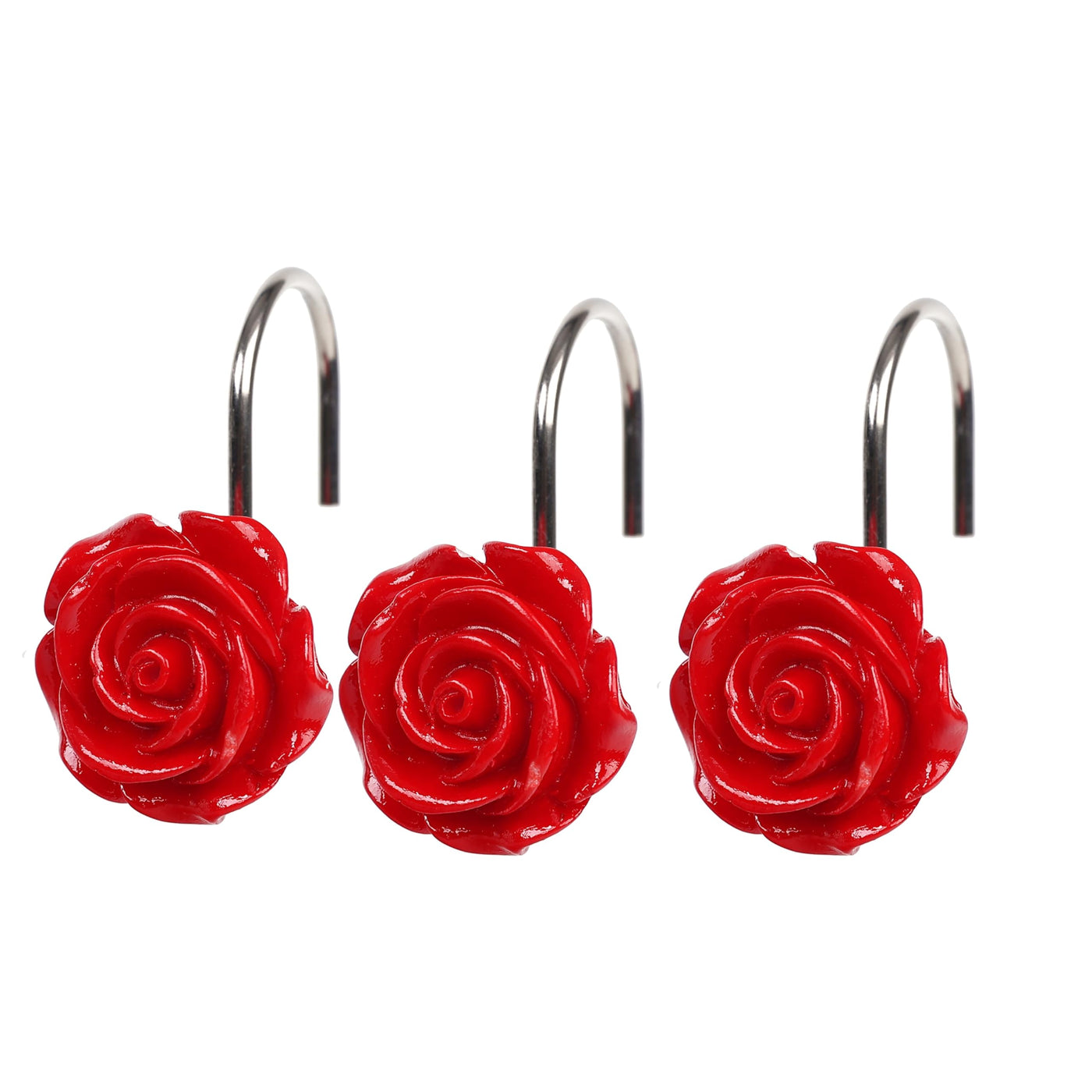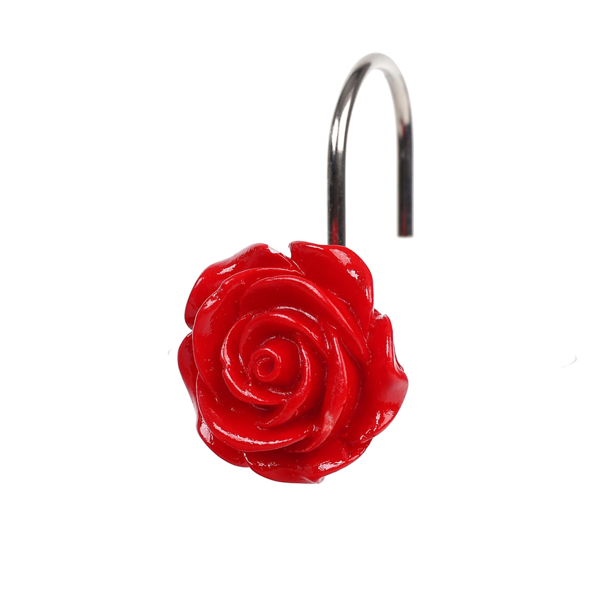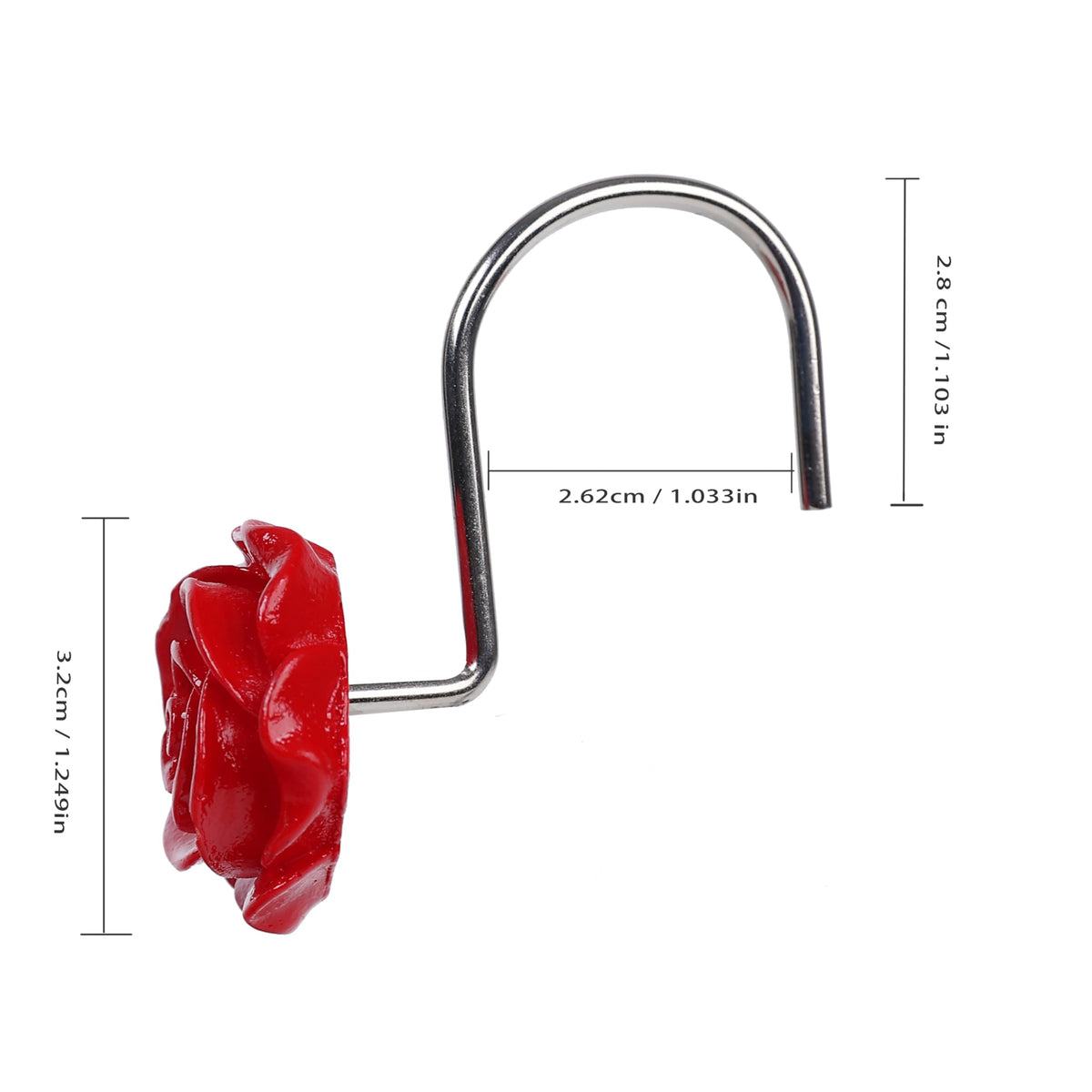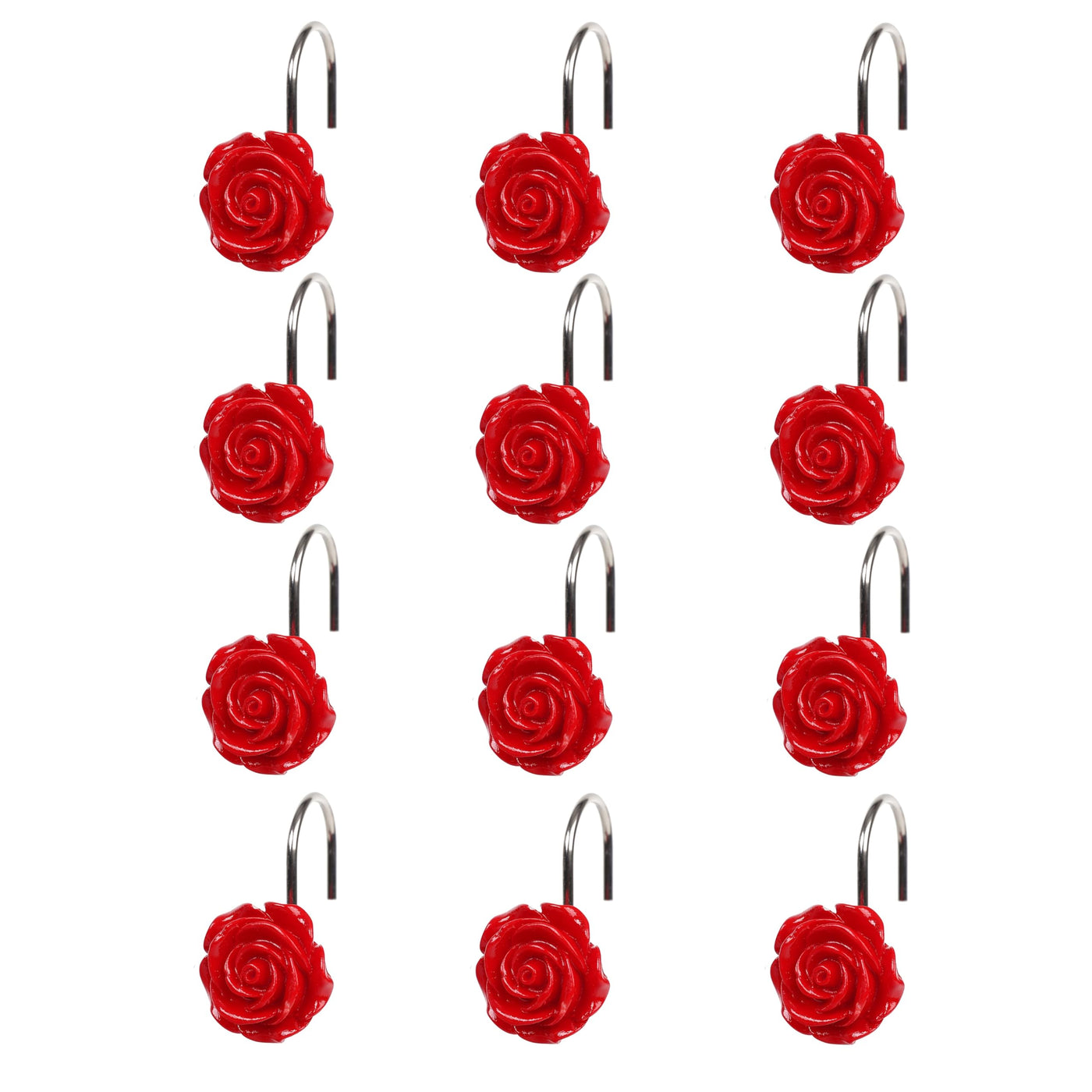 Twofish Home Red Rose Flower Shower Curtain Hooks Red Rose Flower Anti Rust Shower Curtain Hooks Decorative Resin Red Rose Flower Shower Curtain Rings Set Of 12