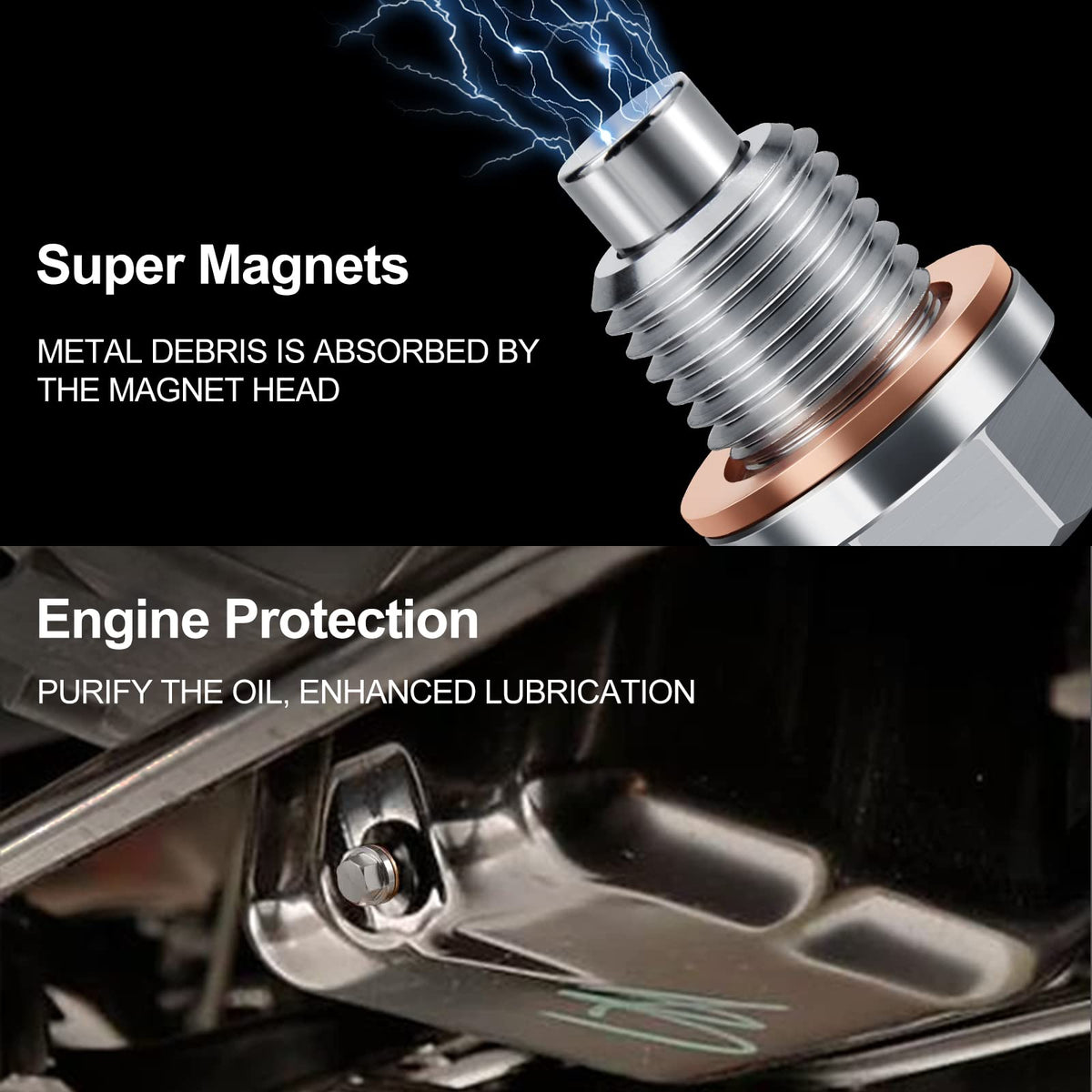 Tyfrozn M14 X 1.5 Magnetic Aluminum Oil Drain Plug Sump Drain Nut Bolt With Copper Gasket Crush Washer Compatible With Most Ford, Gm, Hyundai, Kia And Accord, Crv, Civic, Pilot, Fit, Odyssey
