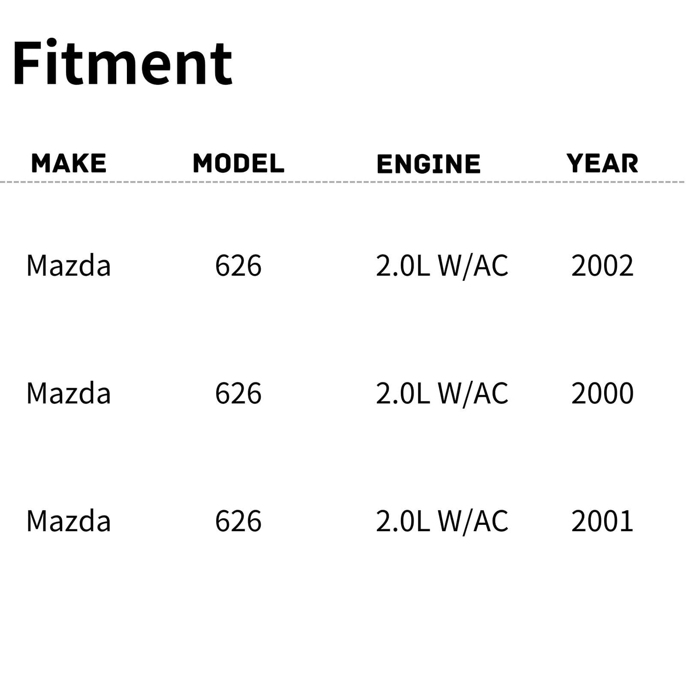 Replacement Radiator/Condenser Cooling Fan Assembly For Mazda 626 00-02 2.0L W/AC, Partslink Number MA3115114, OEM Part Number FS1G15025B, may have alternate model fitment.