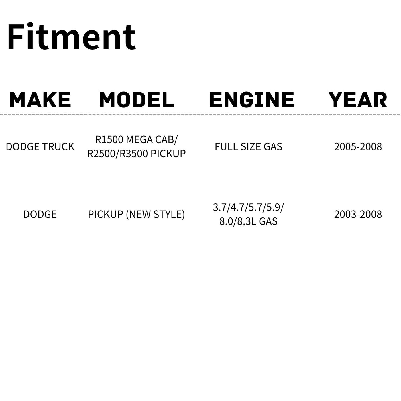 Replacement Radiator/Condenser Cooling Fan Assembly For DODGE TRUCK R1500 MEGA CAB/R2500/R3500 PICKUP '05-'06,'08 FULL SIZE GAS/ PICKUP (NEW STYLE) '03-'08 3.7/4.7/5.7/5.9/8.0/8.3L GAS, Partslink Number CH3120100, OEM Part Number 5104787AA/5103465AA/5103464AB, may have alternate model fitment.