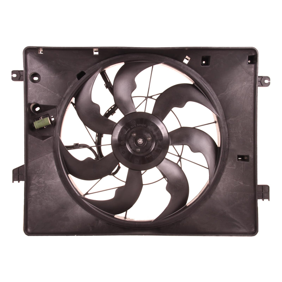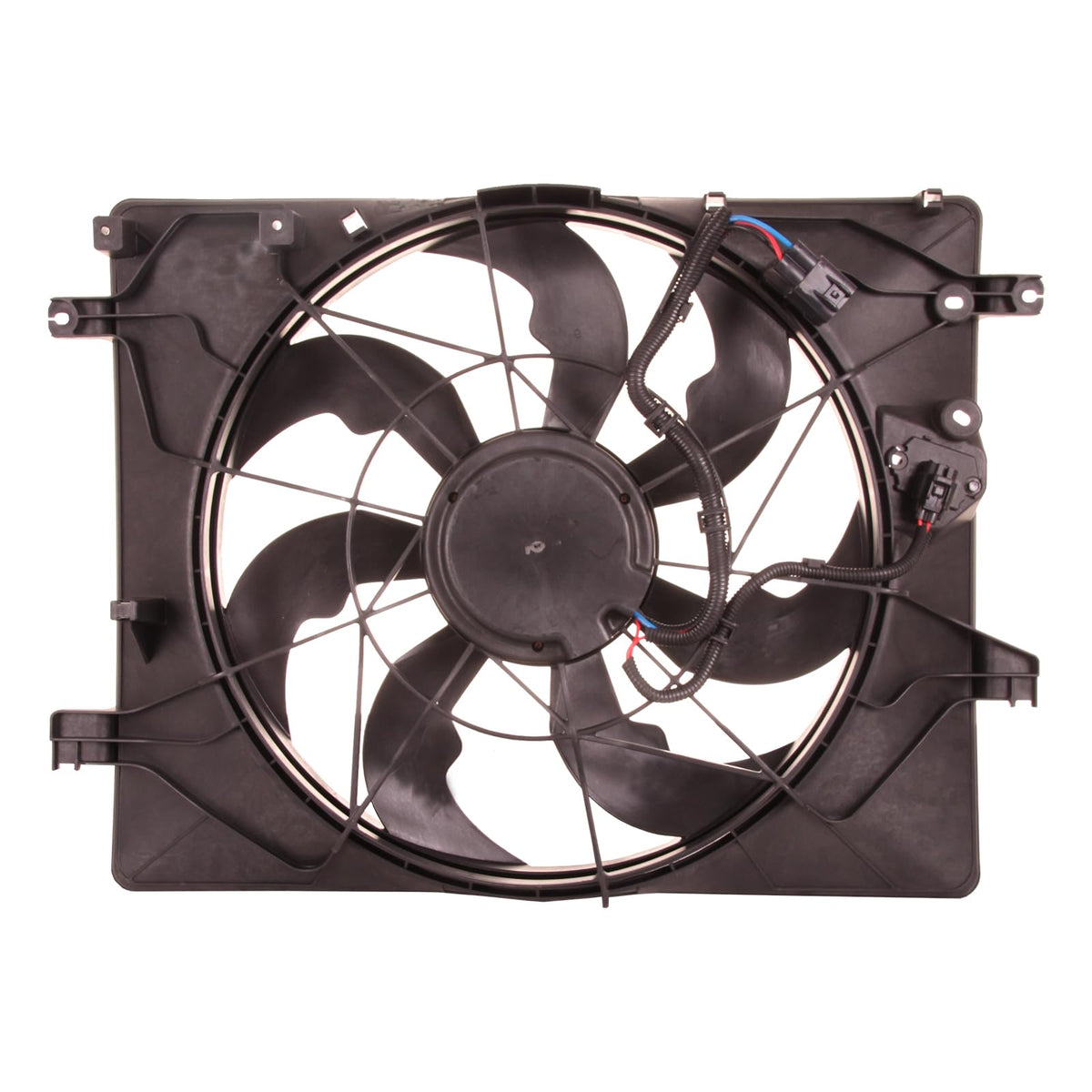 Replacement Radiator/Condenser Cooling Fan Assembly For Hyundai Genesis Coupe '13-'16 V6/3.8 W/Resistor, Partslink Number HY3115148, OEM Part Number 25380-2M280, may have alternate model fitment.