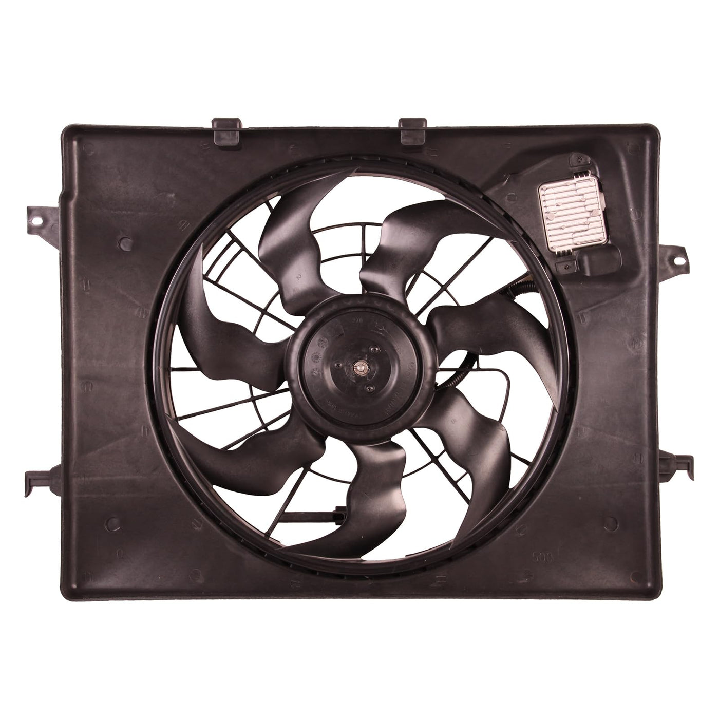 Replacement Radiator/Condenser Cooling Fan Assembly For Kia Optima 2.4L 14-15, Hyundai Sonata 2.4L A/T 14, Partslink Number HY3115150, OEM Part Number 25380-2T500/25350-2T500/25386-2T500/25231-3R000_2.4 & 25231-3K460_2.0/2.4, may have alternate model fitment.