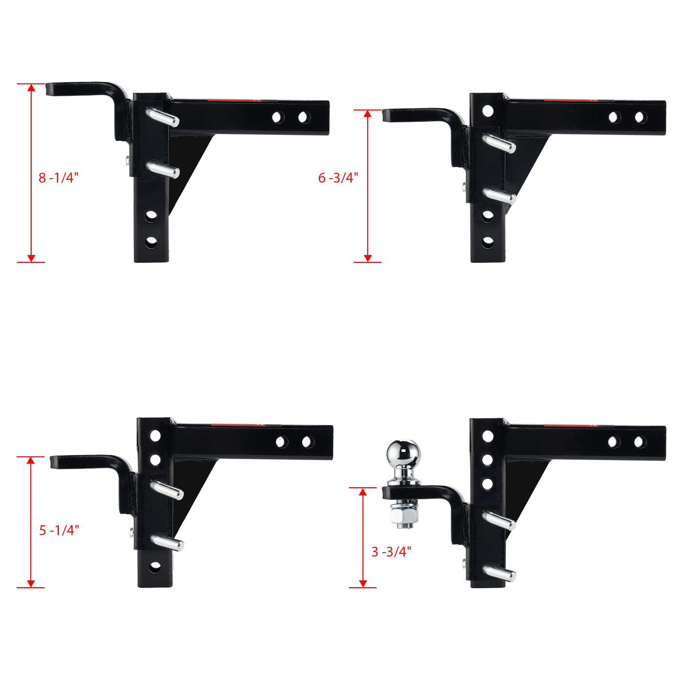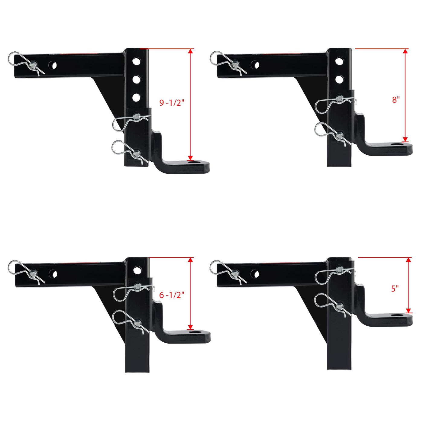 Tyt Adjustable Trailer Hitch Ball Mount, 6-Position Tow Hitch, Fits 2-Inch Receiver, With 1'' Hitch Ball Hole, 9-1/2'' Drop & 8-