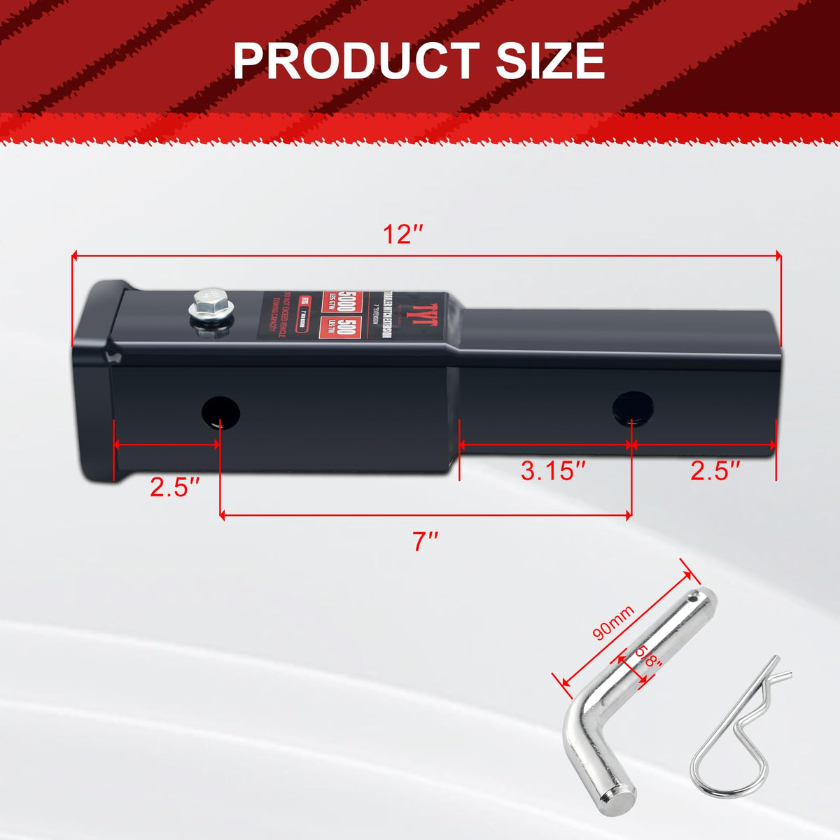 Tyt Trailer Hitch Tube Extender For 2 '' Receiver, 7 Inch Extension Length, With 5/8 Inch Pin And Clip, 5000 Lbs Gtw