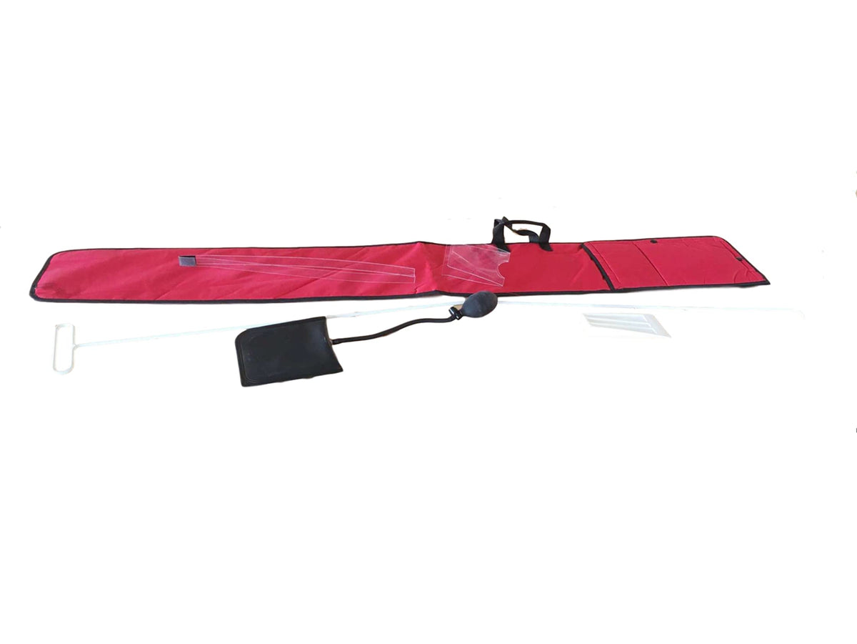 Package included: 1*Long Reach Grabber, 1*Lasso Grabber, 1* Air Wedge Pump, 1* Non-Marring Wedge, 1*Auxiliary tool for Non-Marring Wedge.The kit comes with a red storage bag for easy storage.