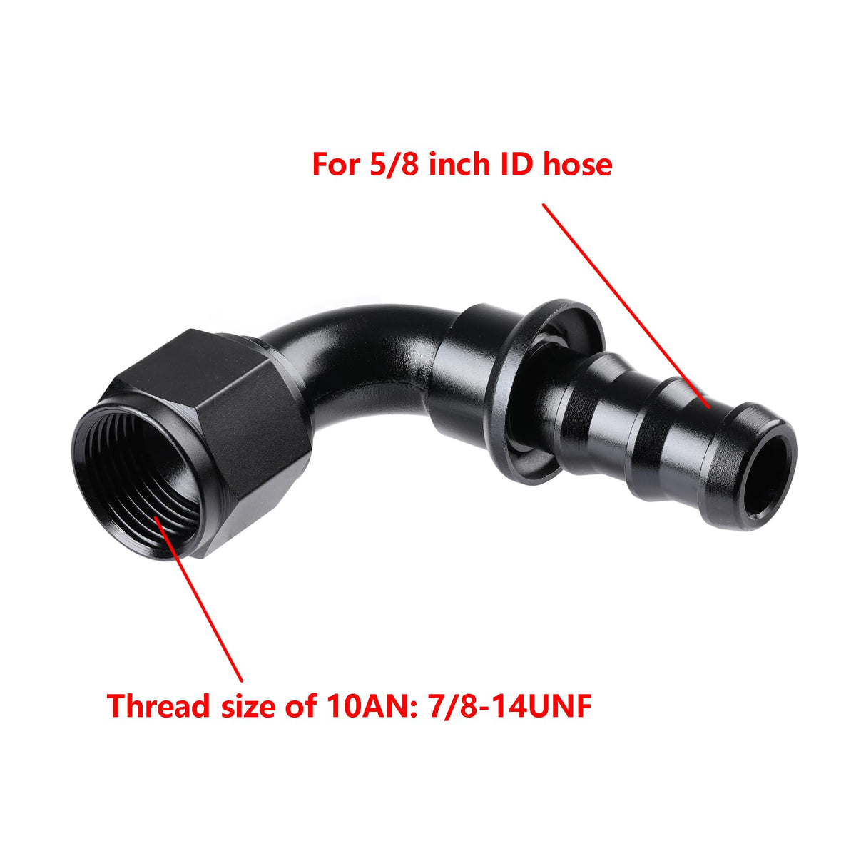 Ucreative 10AN 90 Degree Push Lock Hose Fitting End Black 2PCS