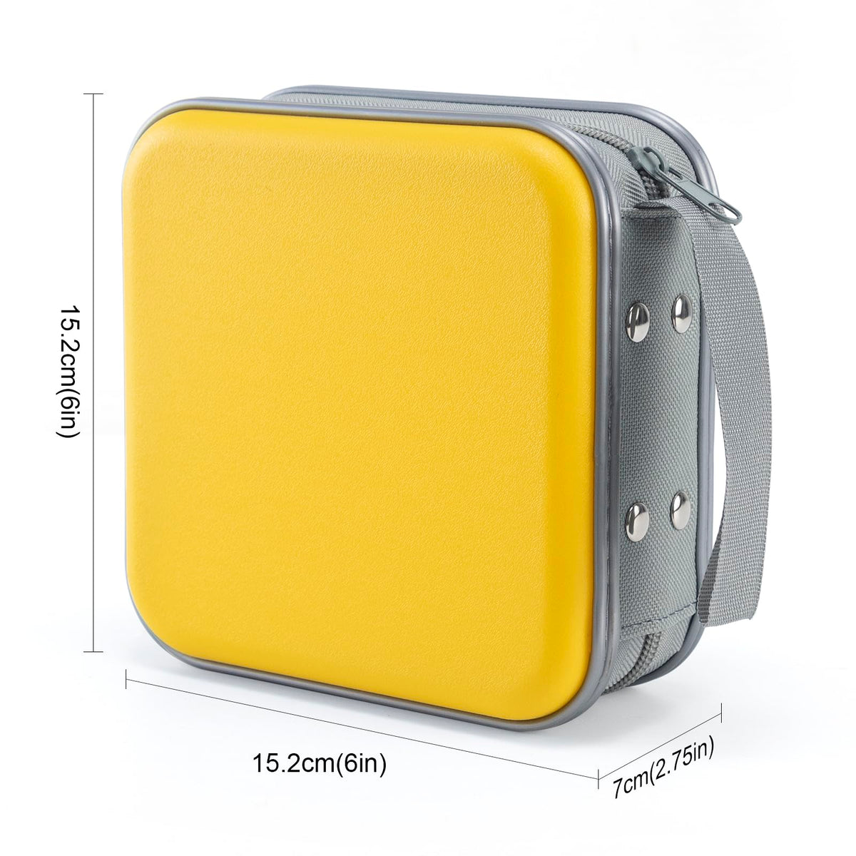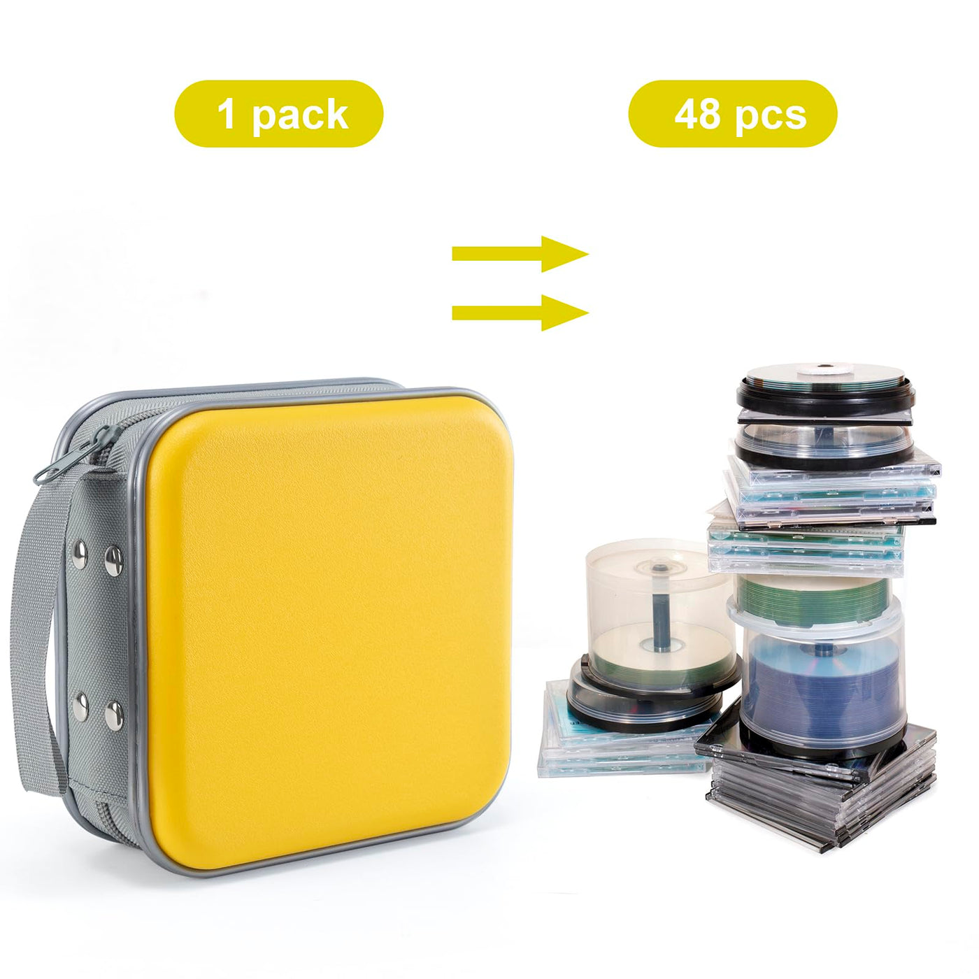 PORTABLE CD CASE:The product size of the CD case is 15.24 * 15.24 * 7 cm/6 * 6 * 2.75 inches, which can store 48 CDs. It has 5 colors to choose from, you can choose your favorite color, and it can help you save more space to store other items. Well organized and won't take up too much space | EASY TO CARRY:The dvd storage case can holder 48 capacity cds or dvds.Help you save a lot of space in your living room.When you are on business or traveling,it can also be placed in the glove box of the car or in the suitcase. | STAY AWAY FROM MESSY:When your room is full of CDs,game discs,and DVDs and is messy, with this DVD holder,you and your children can organize the room well and look so neat. | KEEP AWAY FROM SCRATCHES AND STAINS:The sturdy and durable plastic casing protects your classic CDs.The DVD discs will not be scratched or dirty. The zipper can be easily closed after 96 discs are filled. | Multifunctional use: The CD storage box is not only suitable for VCDs, DVDs, and CDs, but also for storing copies of CT, PET scans, and other medical records. You can use it to organize videos, music, and game discs. It has a strap design and you can take it anywhere.