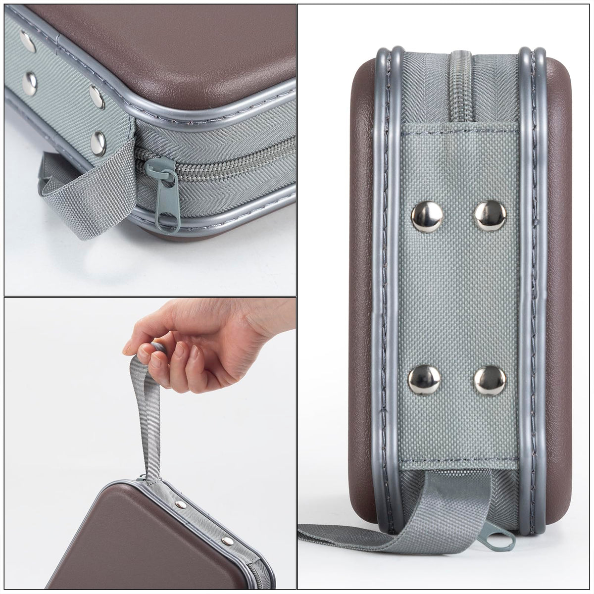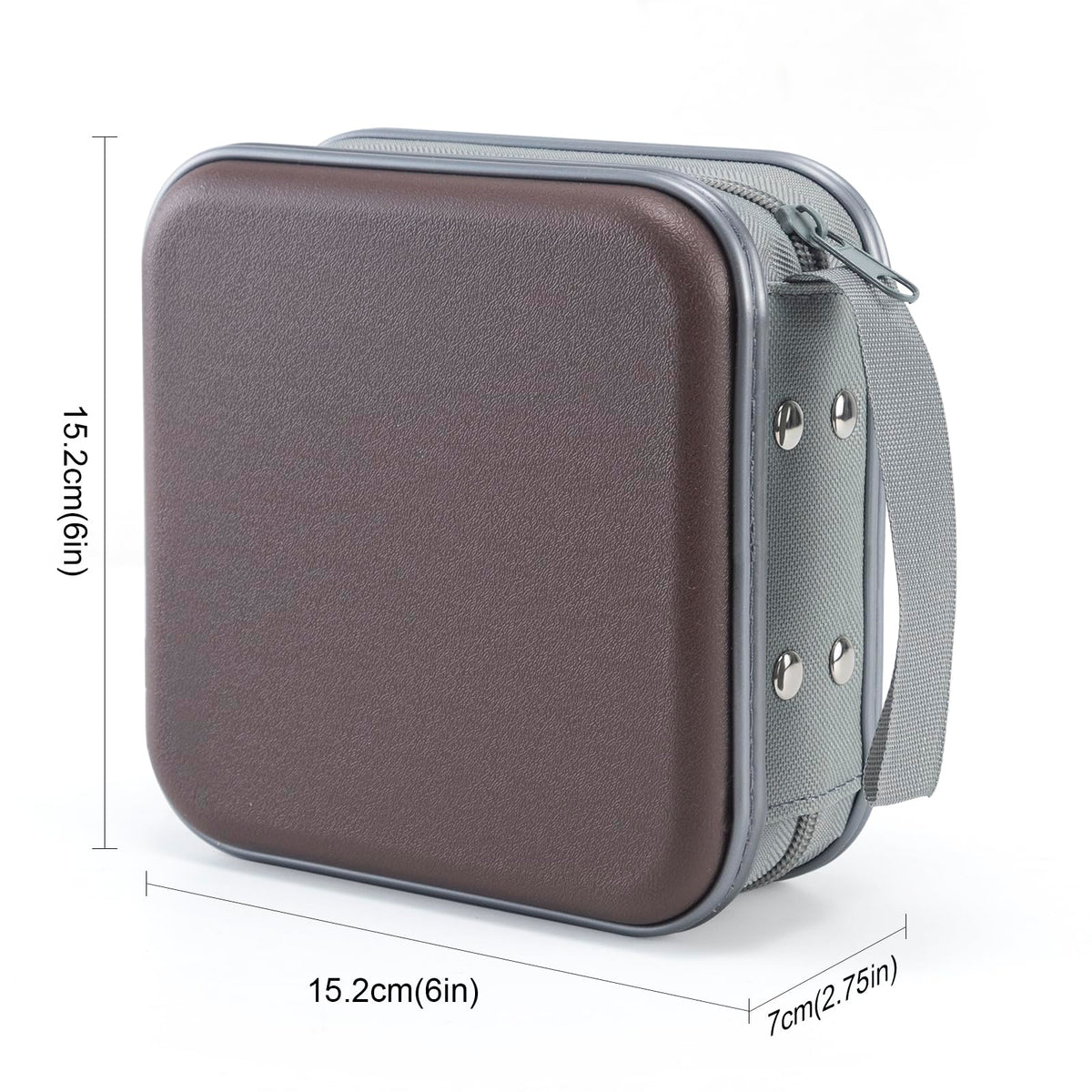 PORTABLE CD CASE:The product size of the CD case is 15.24 * 15.24 * 7 cm/6 * 6 * 2.75 inches, which can store 48 CDs. It has 5 colors to choose from, you can choose your favorite color, and it can help you save more space to store other items. Well organized and won't take up too much space | EASY TO CARRY:The dvd storage case can holder 48 capacity cds or dvds.Help you save a lot of space in your living room.When you are on business or traveling,it can also be placed in the glove box of the car or in the suitcase. | STAY AWAY FROM MESSY:When your room is full of CDs,game discs,and DVDs and is messy, with this DVD holder,you and your children can organize the room well and look so neat. | KEEP AWAY FROM SCRATCHES AND STAINS:The sturdy and durable plastic casing protects your classic CDs.The DVD discs will not be scratched or dirty. The zipper can be easily closed after 96 discs are filled. | Multifunctional use: The CD storage box is not only suitable for VCDs, DVDs, and CDs, but also for storing copies of CT, PET scans, and other medical records. You can use it to organize videos, music, and game discs. It has a strap design and you can take it anywhere.