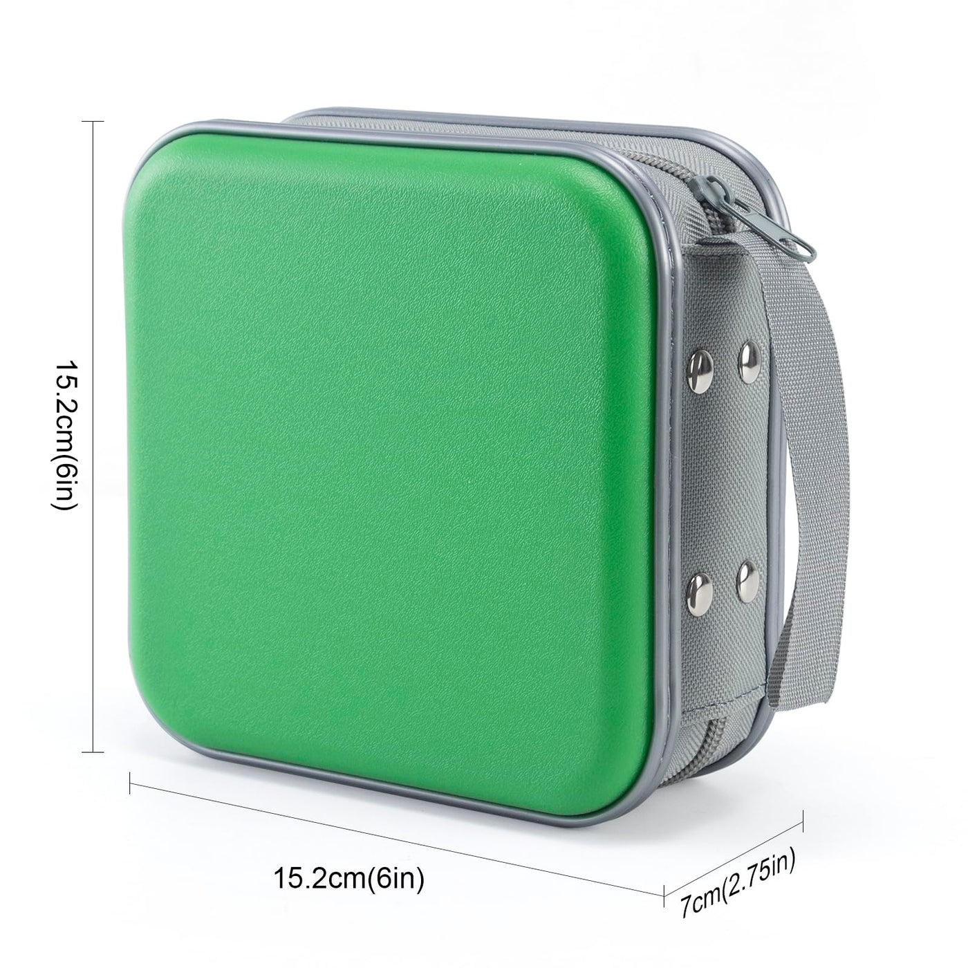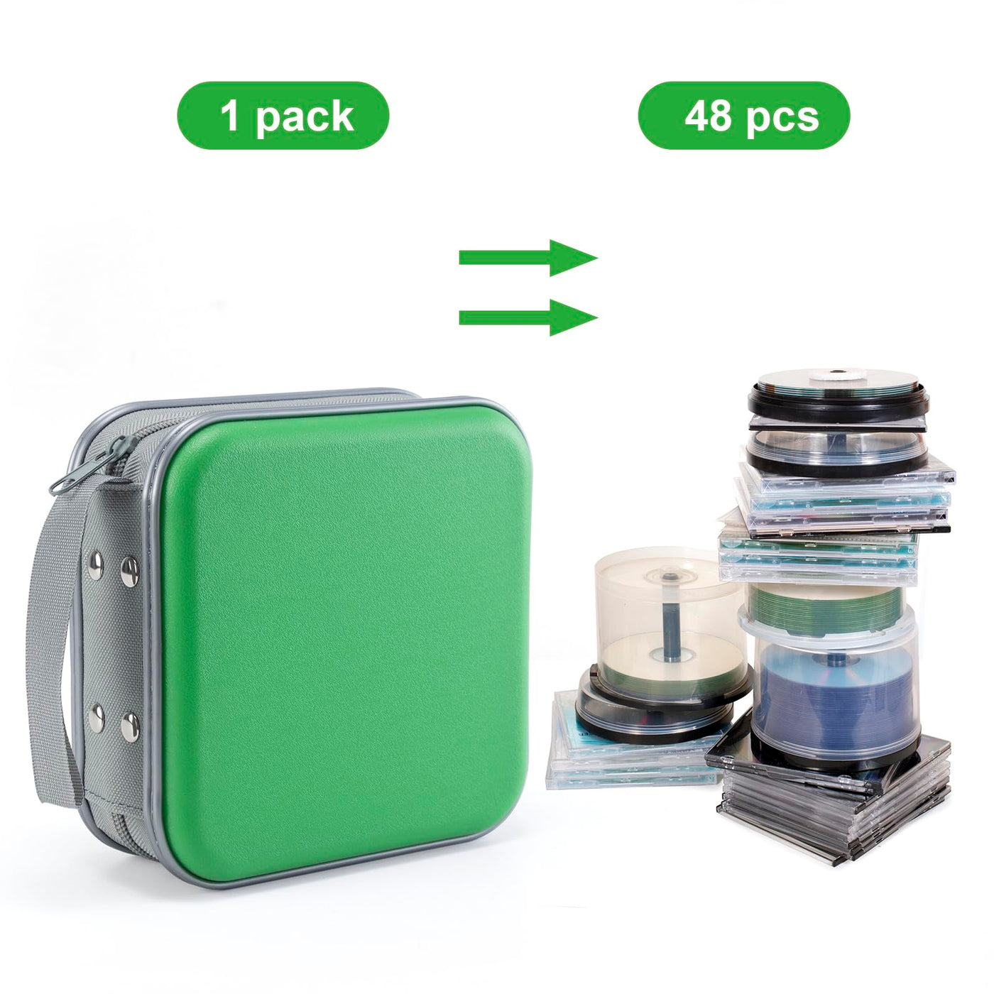 PORTABLE CD CASE:The product size of the CD case is 15.24 * 15.24 * 7 cm/6 * 6 * 2.75 inches, which can store 48 CDs. It has 5 colors to choose from, you can choose your favorite color, and it can help you save more space to store other items. Well organized and won't take up too much space | EASY TO CARRY:The dvd storage case can holder 48 capacity cds or dvds.Help you save a lot of space in your living room.When you are on business or traveling,it can also be placed in the glove box of the car or in the suitcase. | STAY AWAY FROM MESSY:When your room is full of CDs,game discs,and DVDs and is messy, with this DVD holder,you and your children can organize the room well and look so neat. | KEEP AWAY FROM SCRATCHES AND STAINS:The sturdy and durable plastic casing protects your classic CDs.The DVD discs will not be scratched or dirty. The zipper can be easily closed after 96 discs are filled. | Multifunctional use: The CD storage box is not only suitable for VCDs, DVDs, and CDs, but also for storing copies of CT, PET scans, and other medical records. You can use it to organize videos, music, and game discs. It has a strap design and you can take it anywhere.
