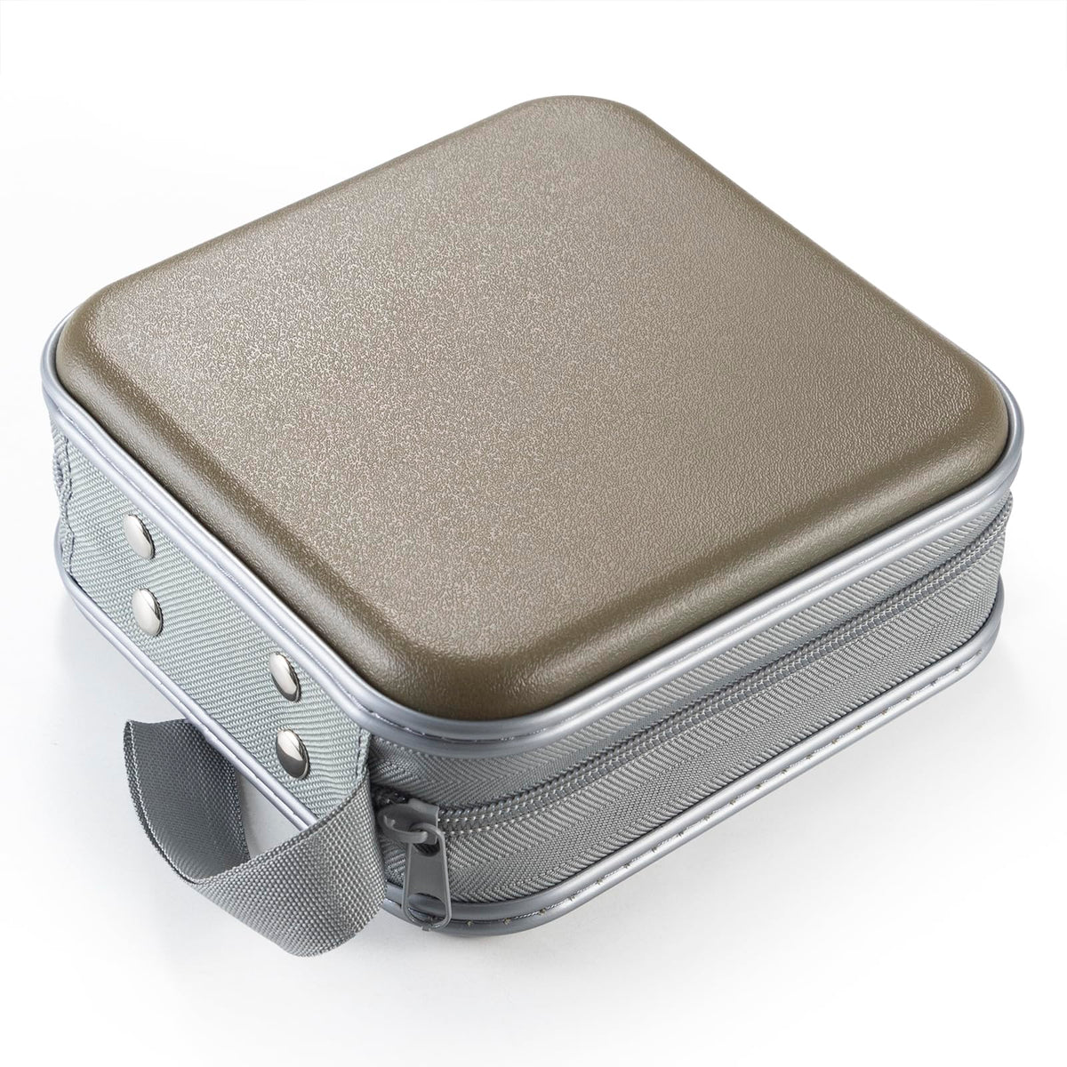 PORTABLE CD CASE:The product size of the CD case is 15.24 * 15.24 * 7 cm/6 * 6 * 2.75 inches, which can store 48 CDs. It has 5 colors to choose from, you can choose your favorite color, and it can help you save more space to store other items. Well organized and won't take up too much space | EASY TO CARRY:The dvd storage case can holder 48 capacity cds or dvds.Help you save a lot of space in your living room.When you are on business or traveling,it can also be placed in the glove box of the car or in the suitcase. | STAY AWAY FROM MESSY:When your room is full of CDs,game discs,and DVDs and is messy, with this DVD holder,you and your children can organize the room well and look so neat. | KEEP AWAY FROM SCRATCHES AND STAINS:The sturdy and durable plastic casing protects your classic CDs.The DVD discs will not be scratched or dirty. The zipper can be easily closed after 96 discs are filled. | Multifunctional use: The CD storage box is not only suitable for VCDs, DVDs, and CDs, but also for storing copies of CT, PET scans, and other medical records. You can use it to organize videos, music, and game discs. It has a strap design and you can take it anywhere.