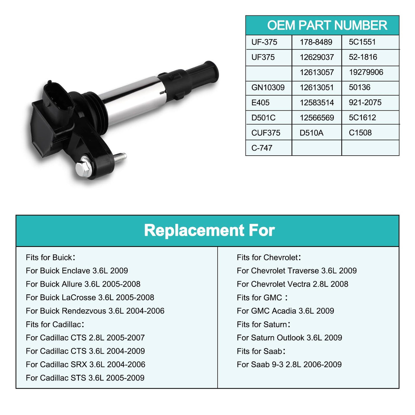 Uf375 Ignition Coil Pack 6Pcs (2.8L 3.6L V6) For Buick Allure Enclave Lacrosse Rendezvous,Cadillac Cts Srx Sts,Chevy/Chevrolet T