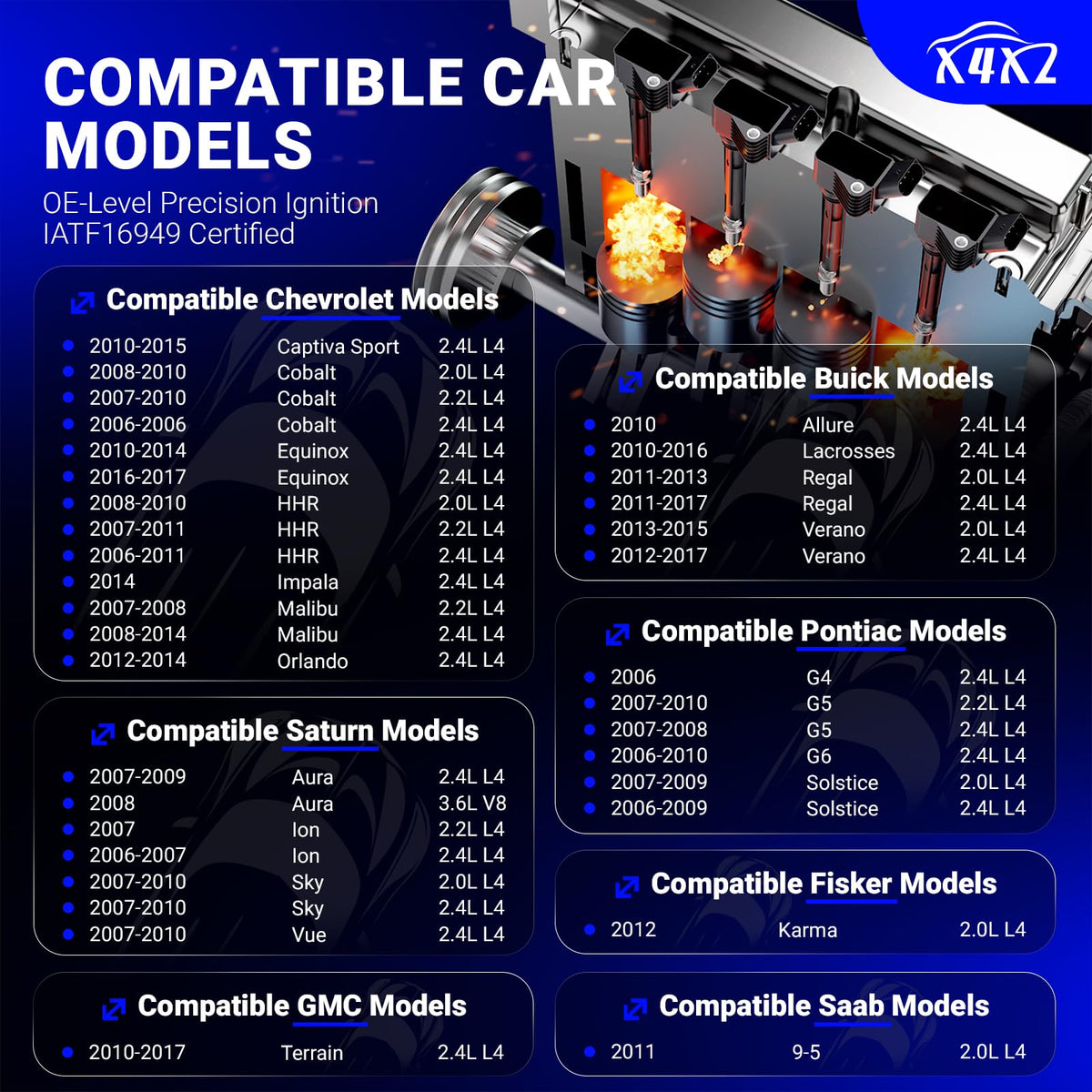 Manufacturer Part Number: Uf491+Xp5263 Replacement Part Number: D517A, 5C1609, E991, 52-1850, Uf491, Uf-491, C1552, Ic571, Gn10485 12578224, 12629646, 12589623, 12638824, 1208089, 4802236, 4805094 Compatible With The Following Vehicles: For 2010 Buick Allure 2.4L L4 For 2010-2016 Buick Lacrosses 2.4L L4 For 2011-2013 Buick Regal 2.0L L4 For 2011-2017 Buick Regal 2.4L L4 For 2013-2015 Buick Verano 2.0L L4 For 2012-2017 Buick Verano 2.4L L4 For 2010-2015 Chevrolet Captiva Sport 2.4L L4 For 2008-2010 Chevrolet Cobalt 2.0L L4 For 2007-2010 Chevrolet Cobalt 2.2L L4 For 2006-2006 Chevrolet Cobalt 2.4L L4 For 2010-2014 Chevrolet Equinox 2.4L L4 For 2016-2017 Chevrolet Equinox 2.4L L4 For 2008-2010 Chevrolet Hhr 2.0L L4 For 2007-2011 Chevrolet Hhr 2.2L L4 For 2006-2011 Chevrolet Hhr 2.4L L4 For 2014 Chevrolet Impala 2.4L L4 For 2007-2008 Chevrolet Malibu 2.2L L4 For 2008-2014 Chevrolet Malibu 2.4L L4 For 2012-2014 Chevrolet Orlando 2.4L L4 For 2006 Pontiac G4 2.4L L4 For 2007-2010 Pontiac G5 2.2L L4 For 2007-2008 Pontiac G5 2.4L L4 For 2006-2010 Pontiac G6 2.4L L4 For 2007-2009 Pontiac Solstice 2.0L L4 For 2006-2009 Pontiac Solstice 2.4L L4 For 2007-2009 Saturn Aura 2.4L L4 For 2008 Saturn Aura 3.6L V8 For 2007 Saturn Ion 2.2L L4 For 2006-2007 Saturn Ion 2.4L L4 For 2007-2010 Saturn Sky 2.0L L4 For 2007-2010 Saturn Sky 2.4L L4 For 2007-2010 Saturn Vue 2.4L L4 For 2011 Saab 9-5 2.0L L4 For 2012 Fisker Karma 2.0L L4 For 2010-2017 Gmc Terrain 2.4L L4