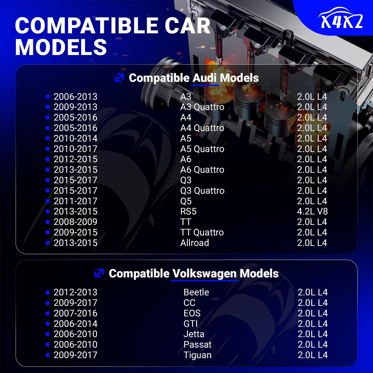 Manufacturer Part Number: Uf575+1675 Replacement Part Number: Pfr7S8Eg, 06H905601A ,1675, 07K905715A, 07K905715B, 07K905715C, 07K905715D,07K905715E, 07K905715F, 06F905115, 06F905115A, 06F905115B, 06F905115C, 06F905115D, 06F905115E, 06F905115F, 06F905115H, 0 221 604 115, 0221604115, 12780, Uf-575, Uf575, Uf529 Compatible With The Following Vehicles: For 2006-2013 Audi A3 2.0L L4 For 2009-2013 Audi A3 Quattro 2.0L L4 For 2005-2016 Audi A4 2.0L L4 For 2005-2016 Audi A4 Quattro 2.0L L4 For 2010-2014 Audi A5 2.0L L4 For 2010-2017 Audi A5 Quattro 2.0L L4 For 2012-2015 Audi A6 2.0L L4 For 2013-2015 Audi A6 Quattro 2.0L For 2015-2017 Audi Q3 2.0L L4 For 2015-2017 Audi Q3 Quattro 2.0L L4 For 2011-2017 Audi Q5 2.0L L4 For 2013-2015 Audi Rs5 4.2L V8 For 2008-2009 Audi Tt 2.0L L4 For 2009-2015 Audi Tt Quattro 2.0L L4 For 2013-2015 Audi Allroad 2.0L L4 For 2012-2013 Volkswagen Beetle 2.0L L4 For 2009-2017 Volkswagen Cc 2.0L L4 For 2007-2016 Volkswagen Eos 2.0L L4 For 2006-2014 Volkswagen Gti 2.0L L4 For 2006-2010 Volkswagen Jetta 2.0L L4 For 2006-2010 Volkswagen Passat 2.0L L4 For 2009-2017 Volkswagen Tiguan 2.0L L4