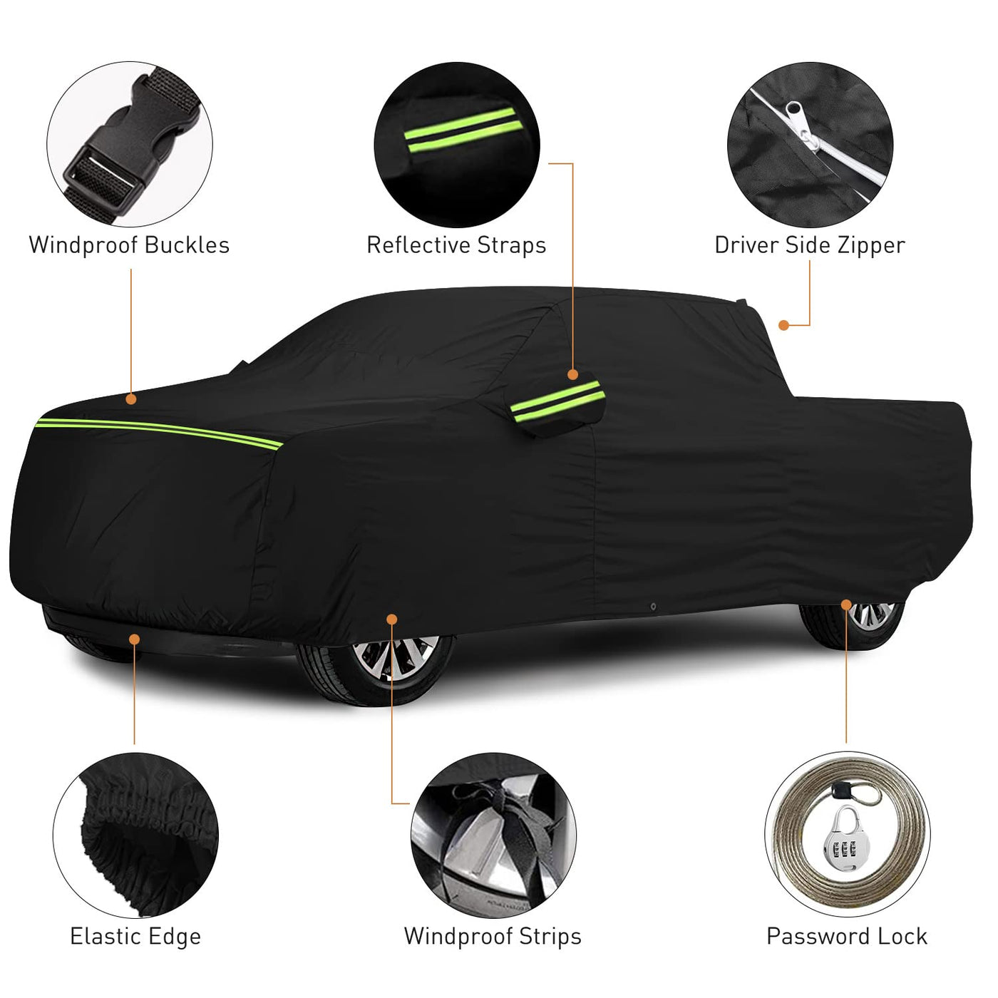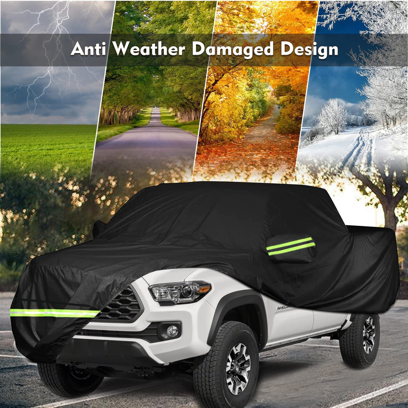 ULROLIT 6 Layer Waterproof Car Cover for Toyo-ta Tacoma Double Cab 5ft Bed Truck Cover Accessories, All Weather Windproof PEVA C
