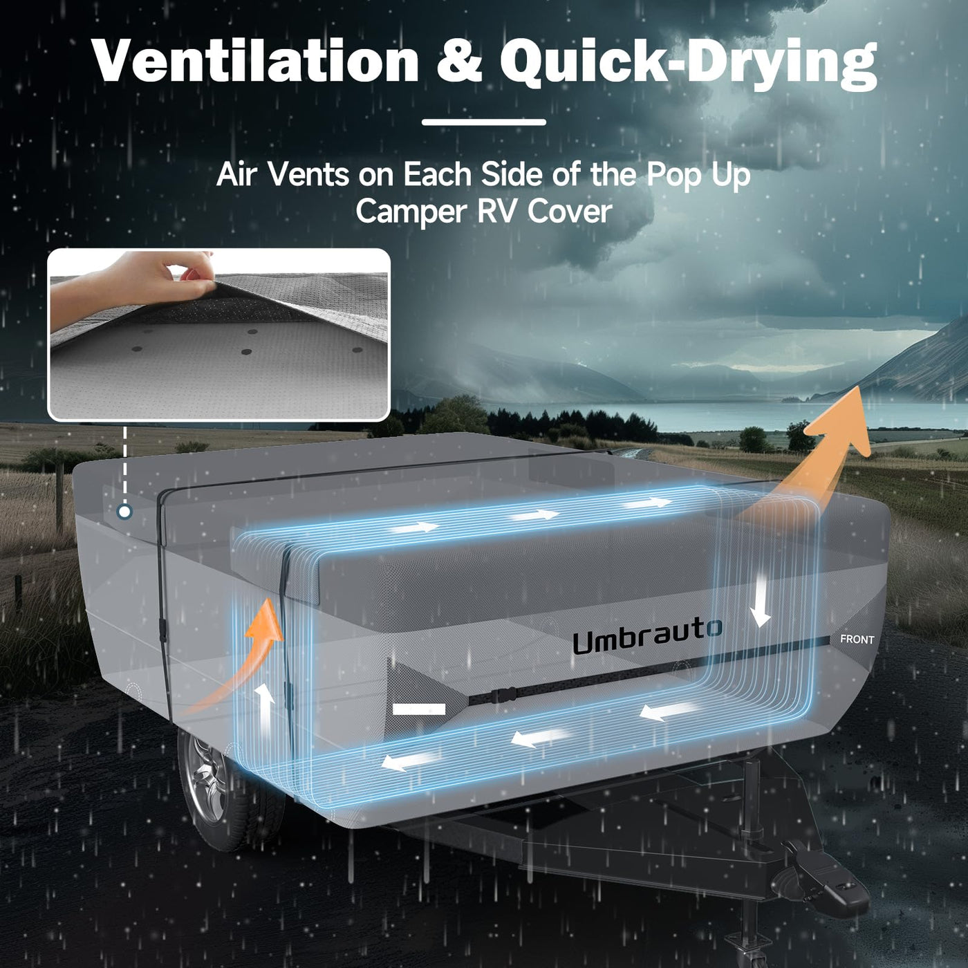 Umbrauto Pop Up Folding Camper Cover Fits 16'-18', Upgraded 7 Layers Top Tent Trailer Cover Waterproof Extra Thick Polypropylene