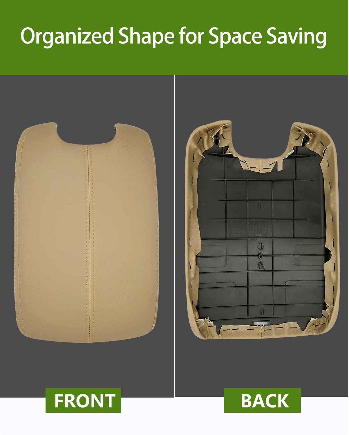 Umishi Center Console Armrest Cover For 2008 2009 2010 2011 2012 Honda Accord Auto Leather Suture Console Lid Cover Replacement (Beige)