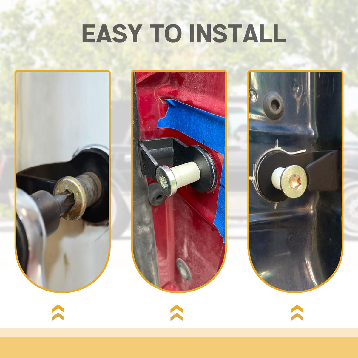 Feature: 1. Set of two, for driver and passengerside 2. Upgraded the bushing size by UNIGT, noneed to shave it by yourself Door Latch Striker Bolts Fitment: 1983-1993 Ford Mustang 1980-1997 Ford F Series Trucks 1975-1991 Ford E Series Vans 1987-1989 Lincoln 1981-1990 Mercury