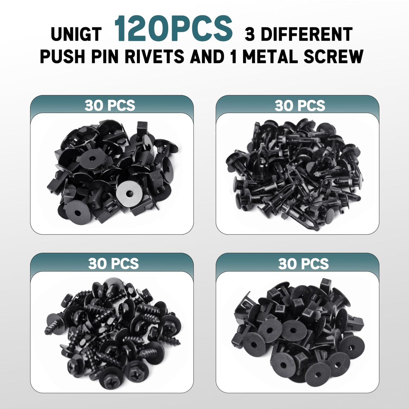 Unigt 4 In 1 Body Bumper Screw Bolt 90159-60498 With 52161-16010 Fender Liner Clips Compatible With Toyota Lexus Wheel Well Liner Retainers 90189-06013 90189-06065- 121Pcs