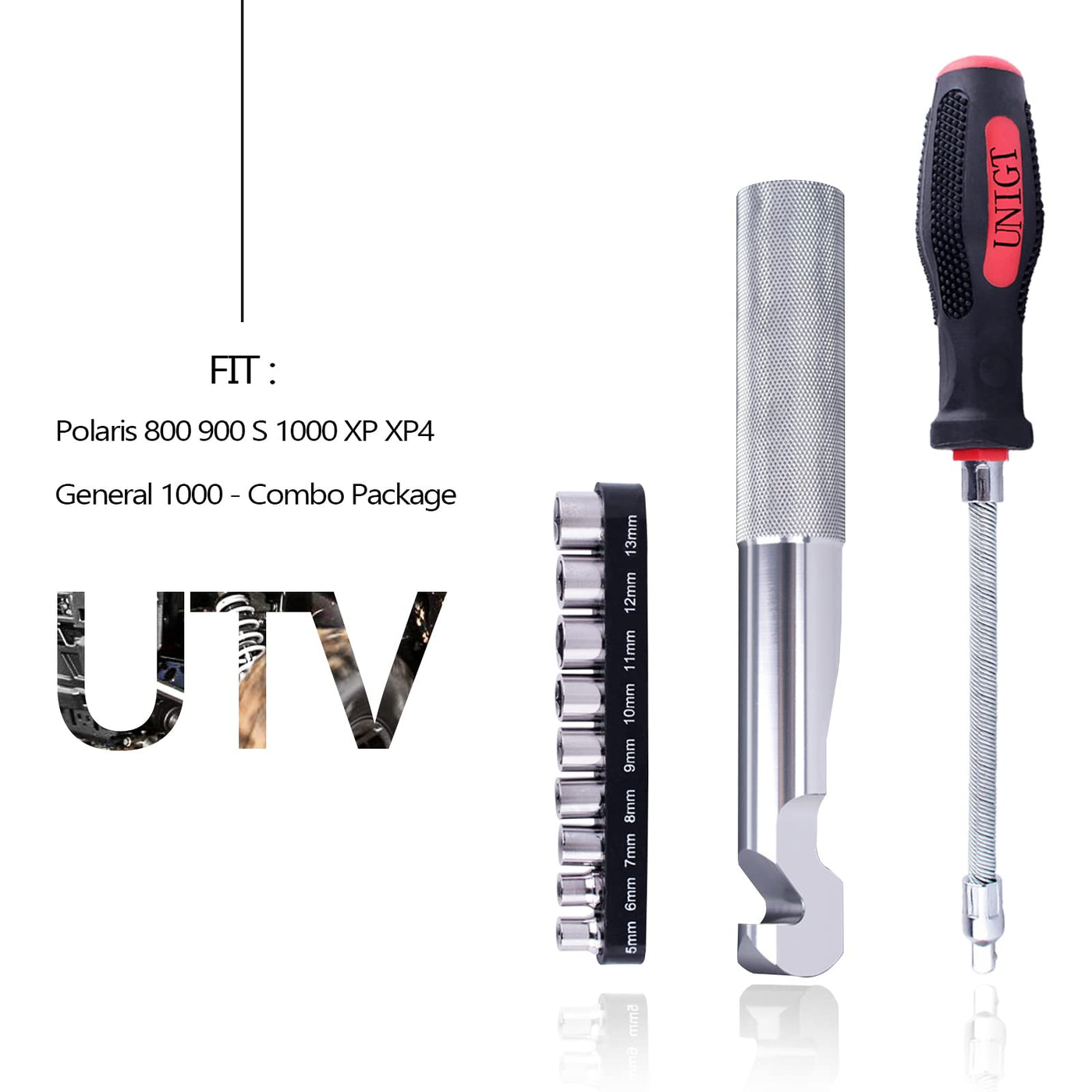 Unigt Clutch Cover Removal Tool Compatible With Polaris Rzr Xp Turbo, Rs1 Ranger Xp 1000 Reversible Belt Changing Tool With Socket Kit (Belt Tool)