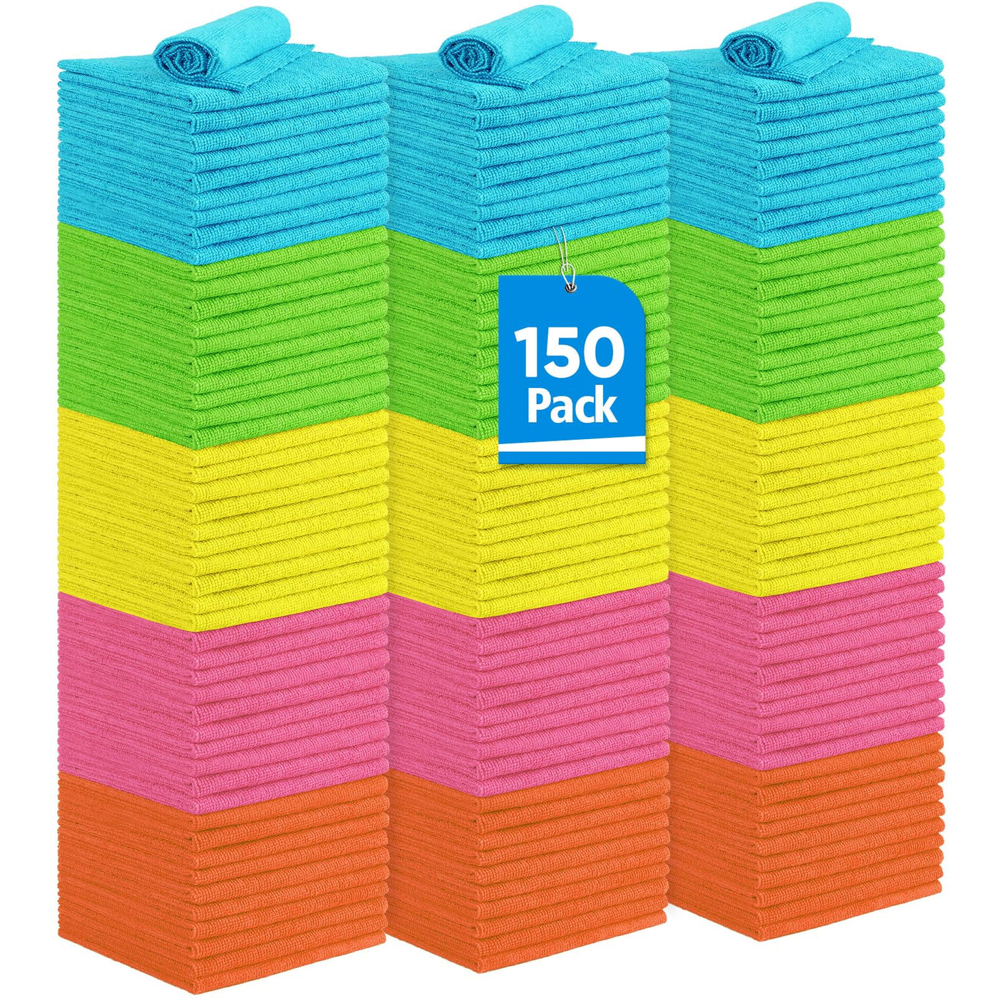 Unimade Microfiber Cleaning Cloth, 150Pk Reusable Shop Rags Bulk Microfiber Cleansing Cloth Lint Free Cleaning-Towel For Car Kit