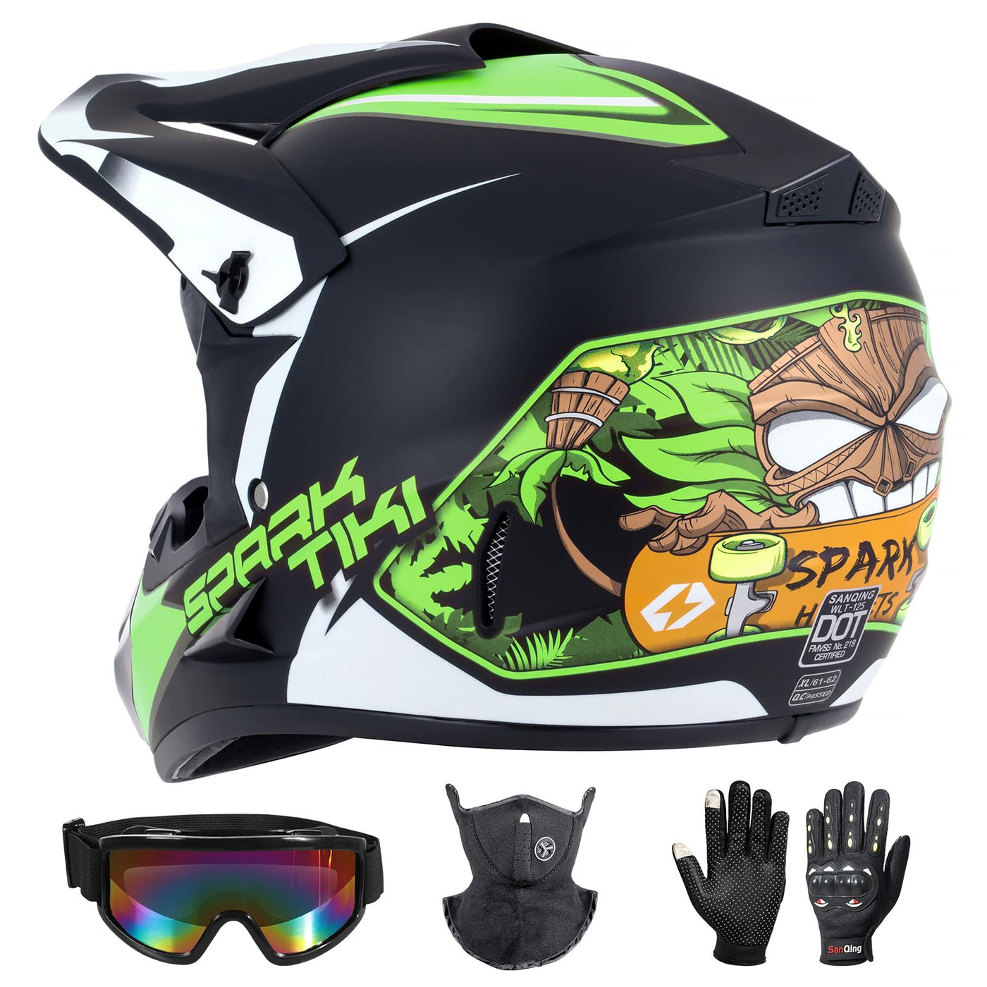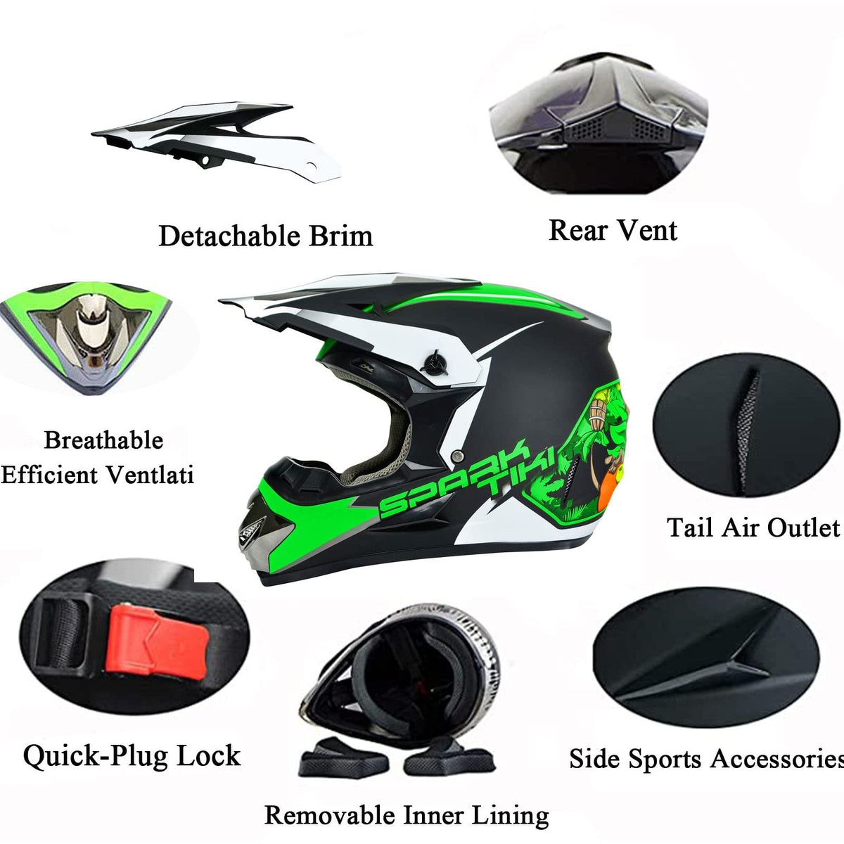 Unisex Motocross Helmet For Kids And Youth,Outdoor Dirt Bike Helmets,Off-Road Helmet With Gloves Goggles Face Shield,Atv Motorcycle Helmet