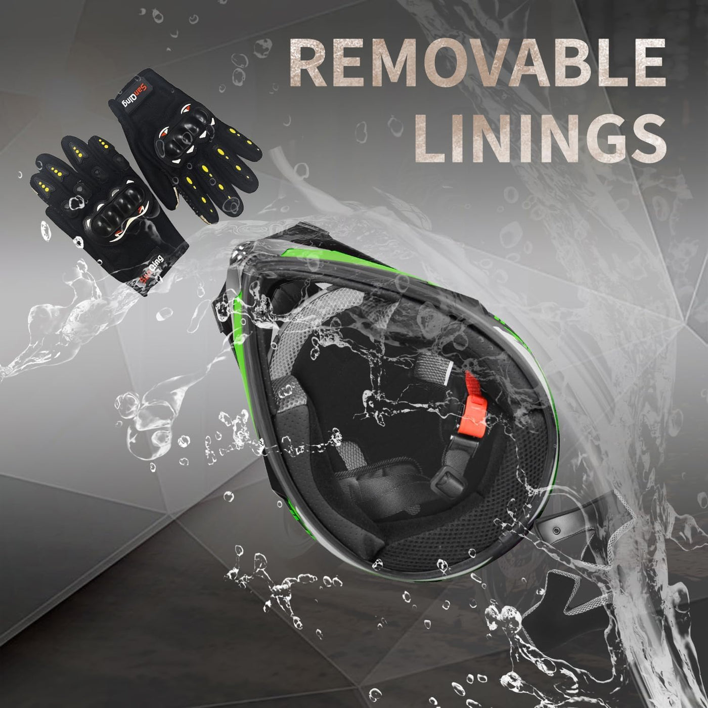 Q: What accessories are included with the motocross helmet?A: The helmet package includes a helmet, goggles, gloves, and a face shield, providing great value for money and complete protection for young riders.