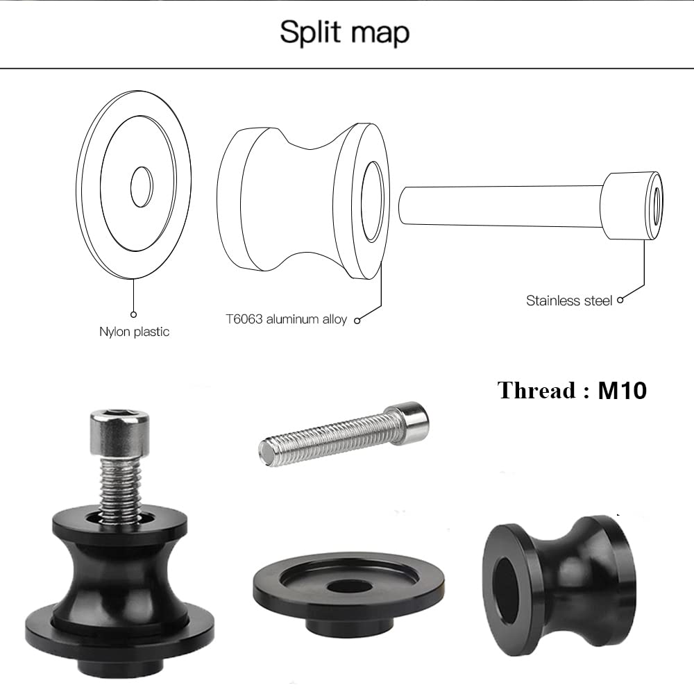 Universal 10mm M10 Swing arm Sliders Spools, Fit with K.T.M Duke 125/200/390 RC 125/200/390 FZR 1000/600R/400 Kawasaki Z750 ER-6