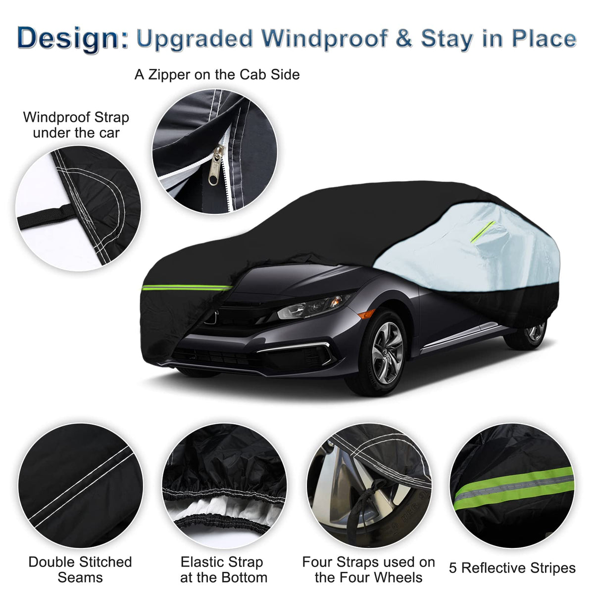 Universal Sedan Car Cover Fit forToyota Corolla, Honda Civic, Nissan Sentra, Ford Focus, Chevy Cruze,Waterproof All Weather Anti