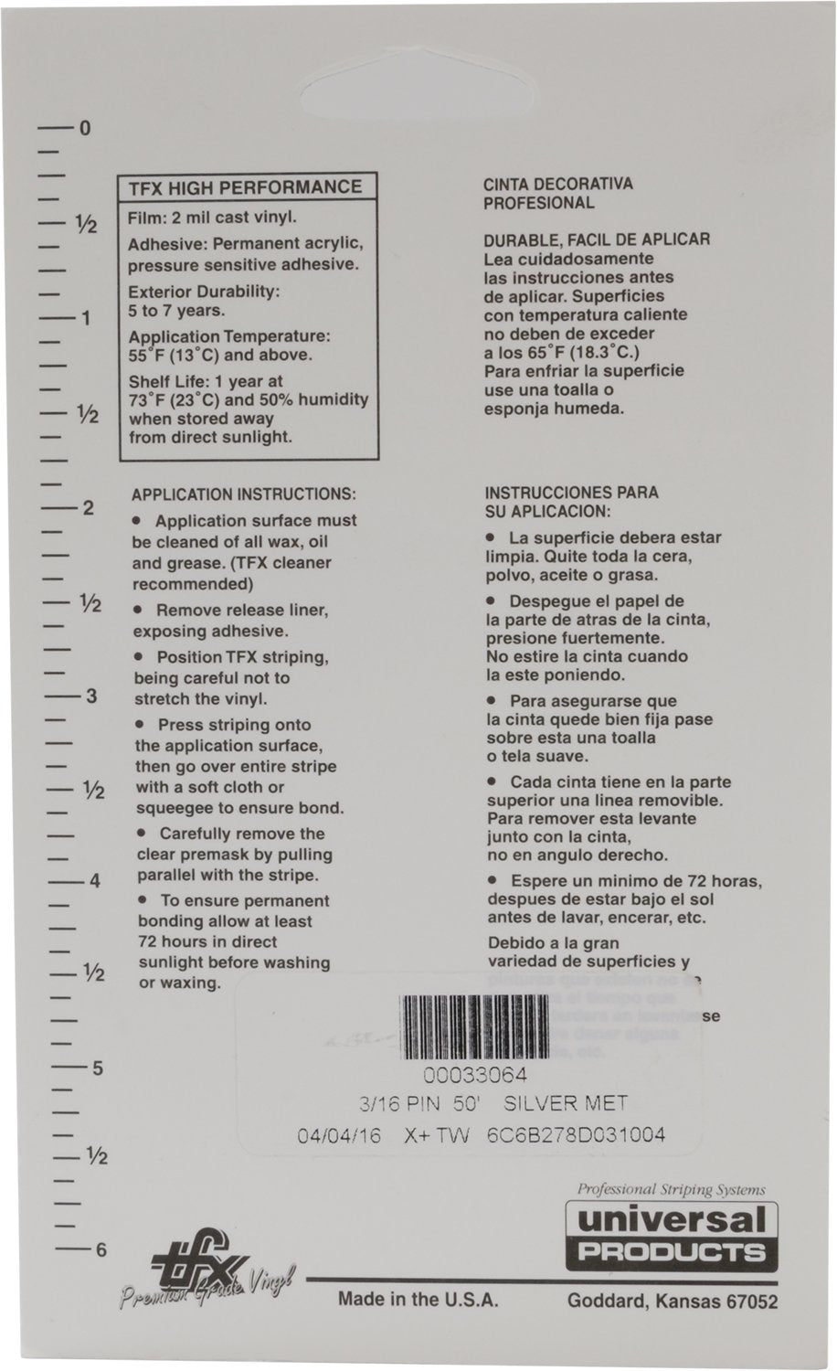 Universal Tfx 00033064 - Auto Customizing Dual Pinstripe - 3/16'' X 50' (1/16 Stripe, 1/16'' Gap, Then 1/16 Stripe) - 064-