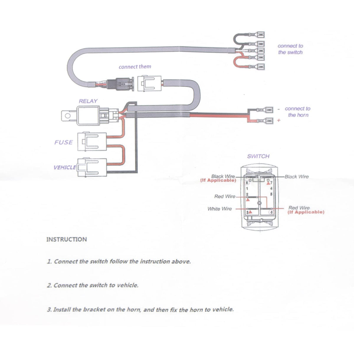 Horn Kit For UTV 12V Horn With Button Rocker Switch Our UTV horn kit has strong penetrating power, even in a noisy environment, you can easily judge your location through the powerful sound of the speaker, ensuring your driving safety to the greatest extent. This Universal UTV Horn Kit is a direct replacement for many UTV vehicles. Fit For: Compatible with Polaris Ranger RZR, General or Ranger Compatible with Arctic Cat Wildcat, Prowler, Trail Compatible with Can Am Maverick, Commander Max, Defender or Outlander Compatible with Honda Pioneer, Talon, Talon, Rincon Compatible with Kawasaki Teryx, Mule Compatible with Yamaha Rhino, Kubota RTV, Deere Gator Compatible with Textron Wildcat XX trail Feature : The speaker kit only supports long press and short press, and it needs to be repeated 2 times to stop it. Doesn't mean it is bad. Features : 1. Waterproof and dustproof 2. easy installation 3. Loud voice 4. multiple use 5. Switch with LED 6.Ensure driving safety Package Includes: horn, plug, interface, fuse, switch.