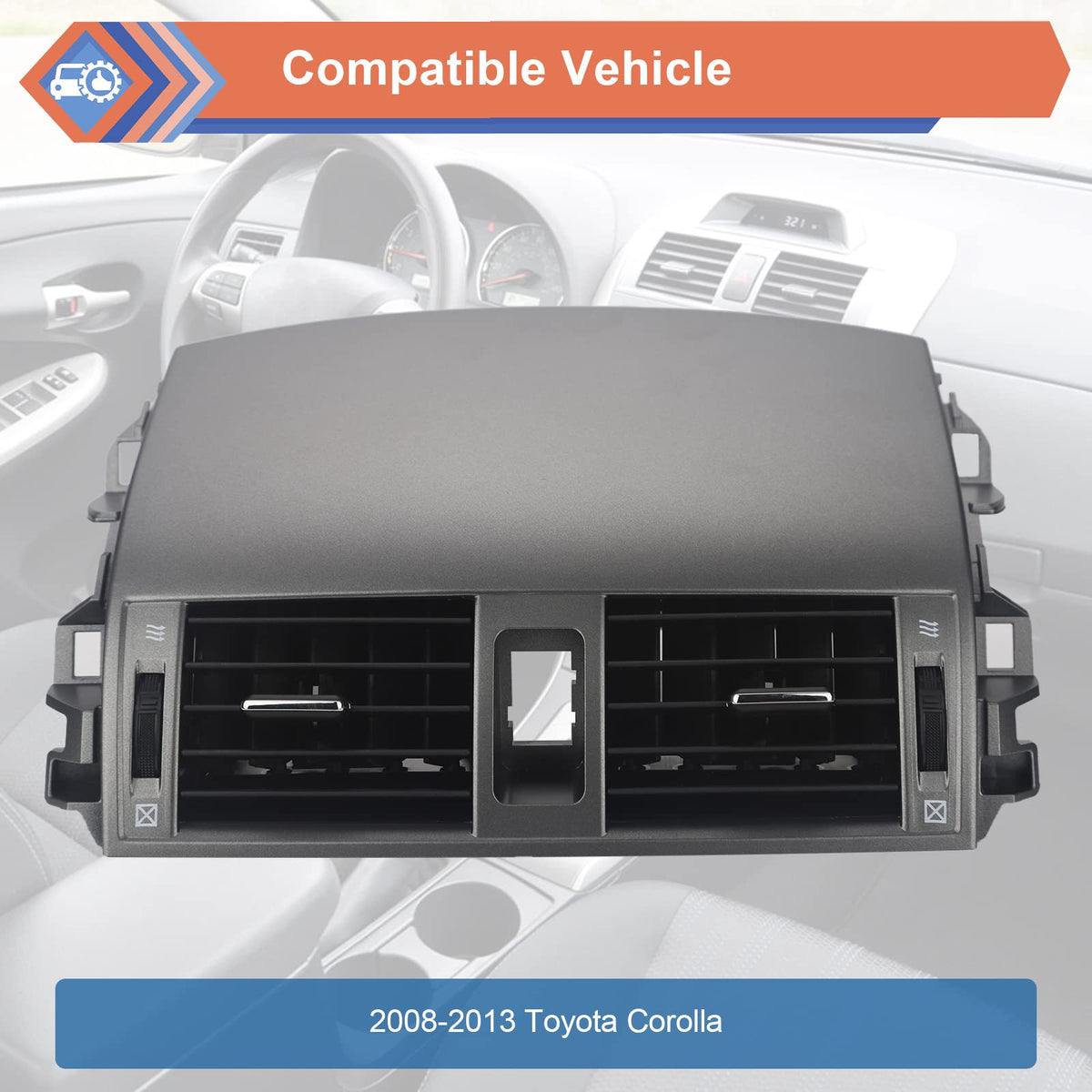 ?Package Include? 1 * Center Dash A/C Outlet Air Vent Panel With Hand Wheels Replaces Part Number: #55670-02160, 55663-02060 Compatible with Toyota Vehicles:2008-2013 Toyota Corolla Warranty: Our Center Dash A/C Outlet Air Vent Panel With Hand Wheels Has 1 Year Warranty. All Products Shipped Are Tested And Easy To Install. We Offer True Worry-free Shopping And Convenient Refund Policy Experience. 100% Brand New And High Quality Guaranteed.