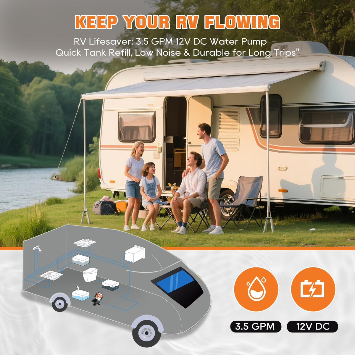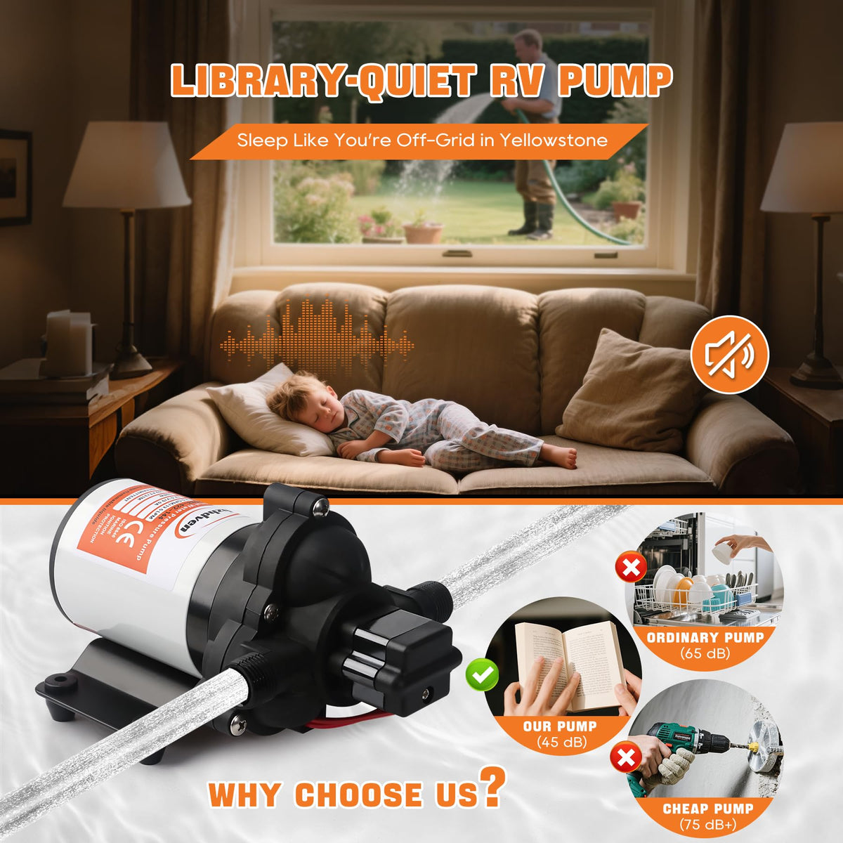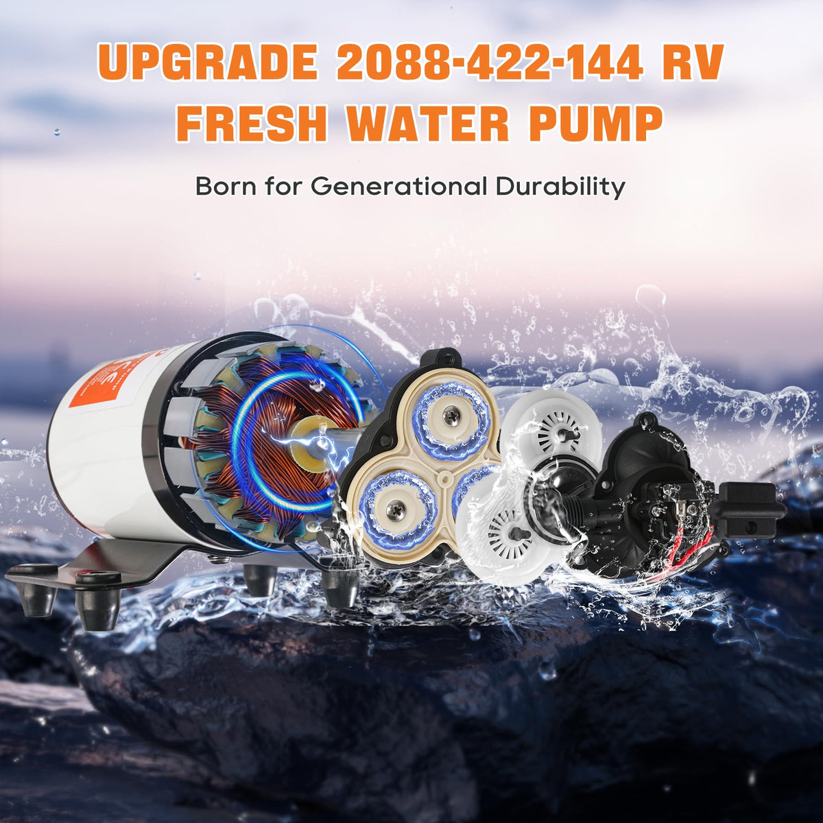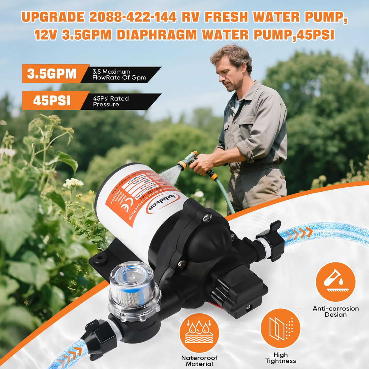 Upgraded 2088-422-144 RV Fresh Water Pump,3.5GPM Self-Priming Diaphragm Water Pump,45Psi 1/2MNPT Connection,Pressure Switch and