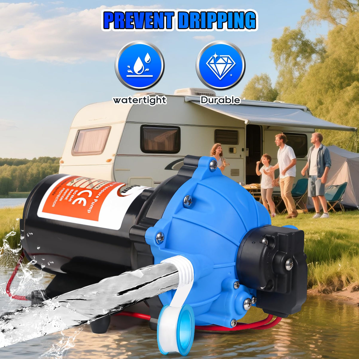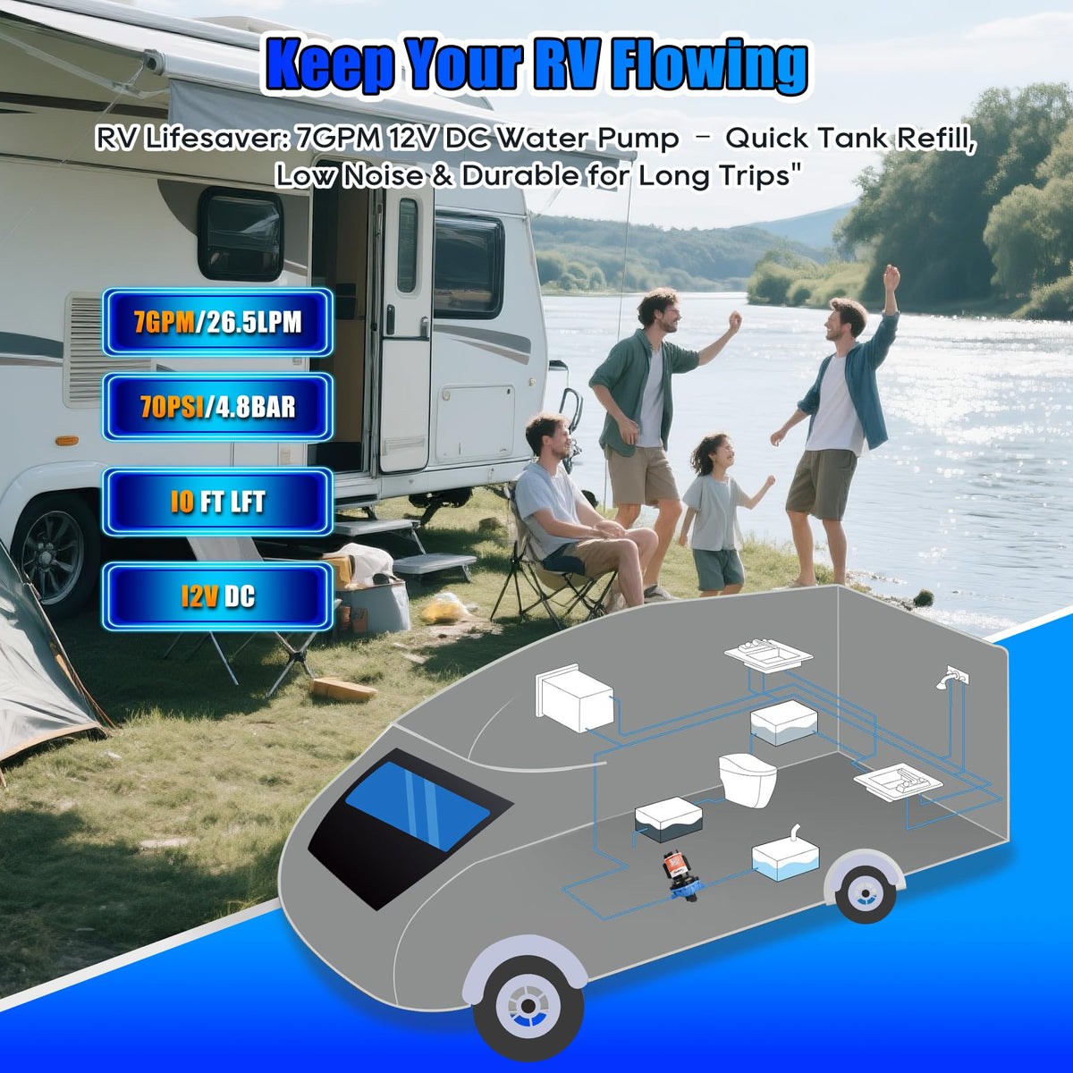 [Upgraded Version] 12V DC RV Fresh Water Pump, 7GPM 70PSI, Five Chamber Self-Priming Diaphragm Pump with Heavy Duty Pressure Swi
