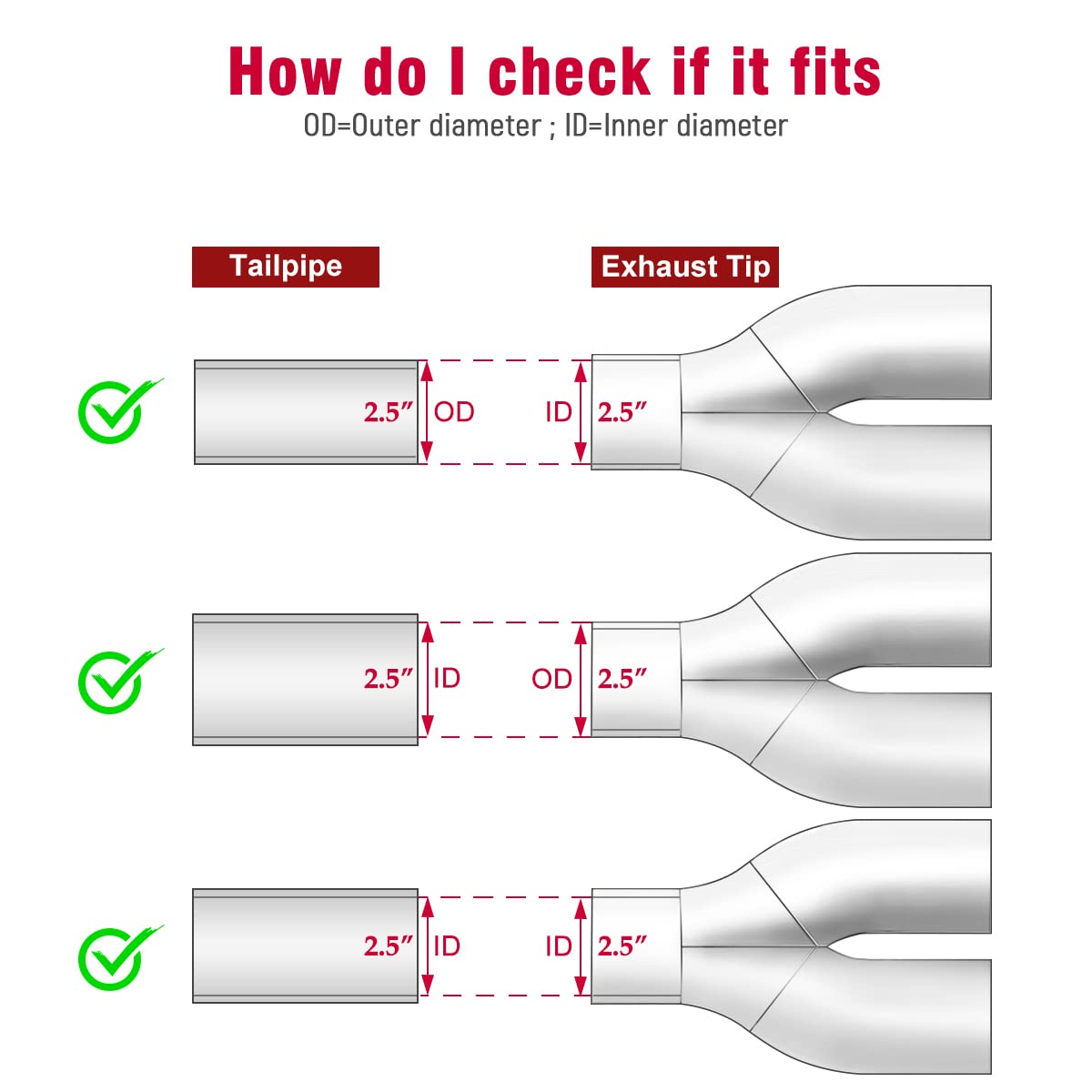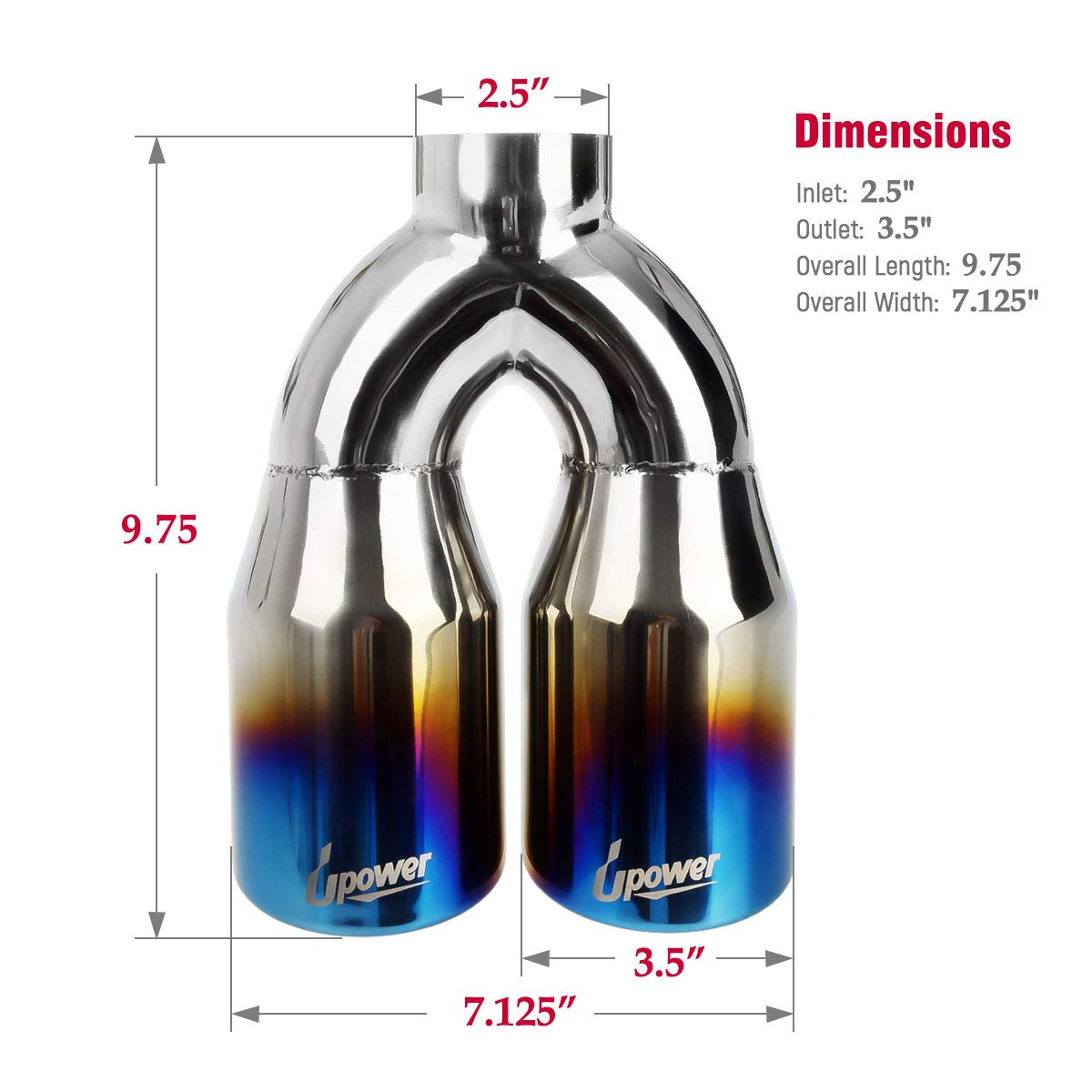 Upower 2.5 Inch Inlet 3.5 Inch Outlet Dual Exhaust Tips Tailpipe 2.5'' to 3.5'' 9.75'' Length 304 Stainless Steel Polished Vacuu