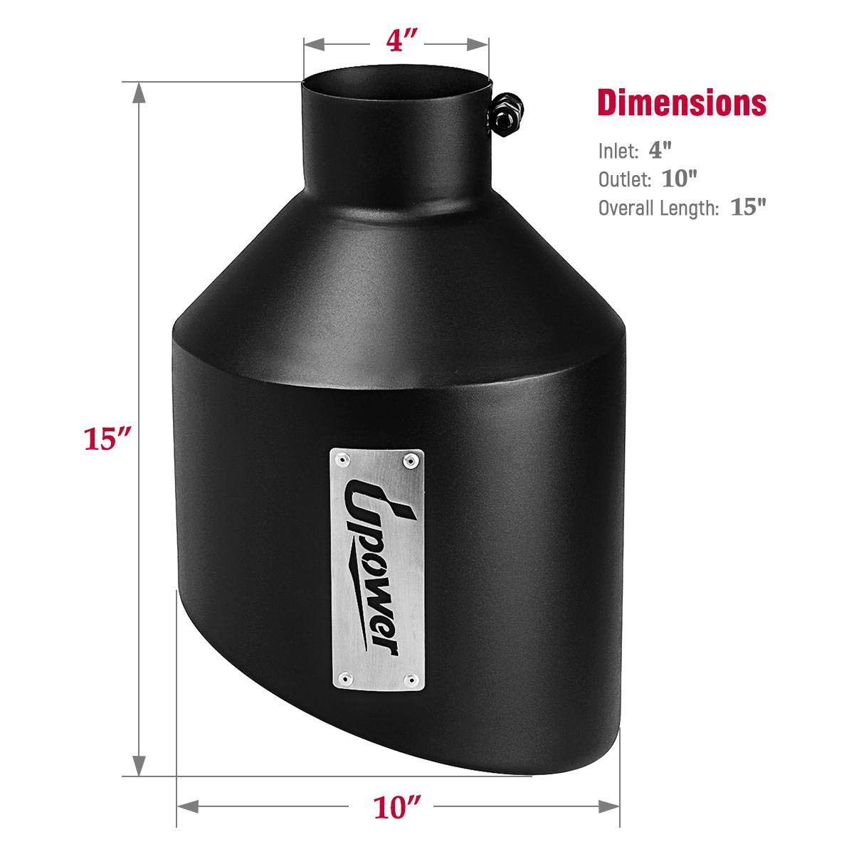Upower Exhaust Tips 4 '' Inlet 10 '' Outlet 15 '' Black Long Stainless Steel Bolt-On