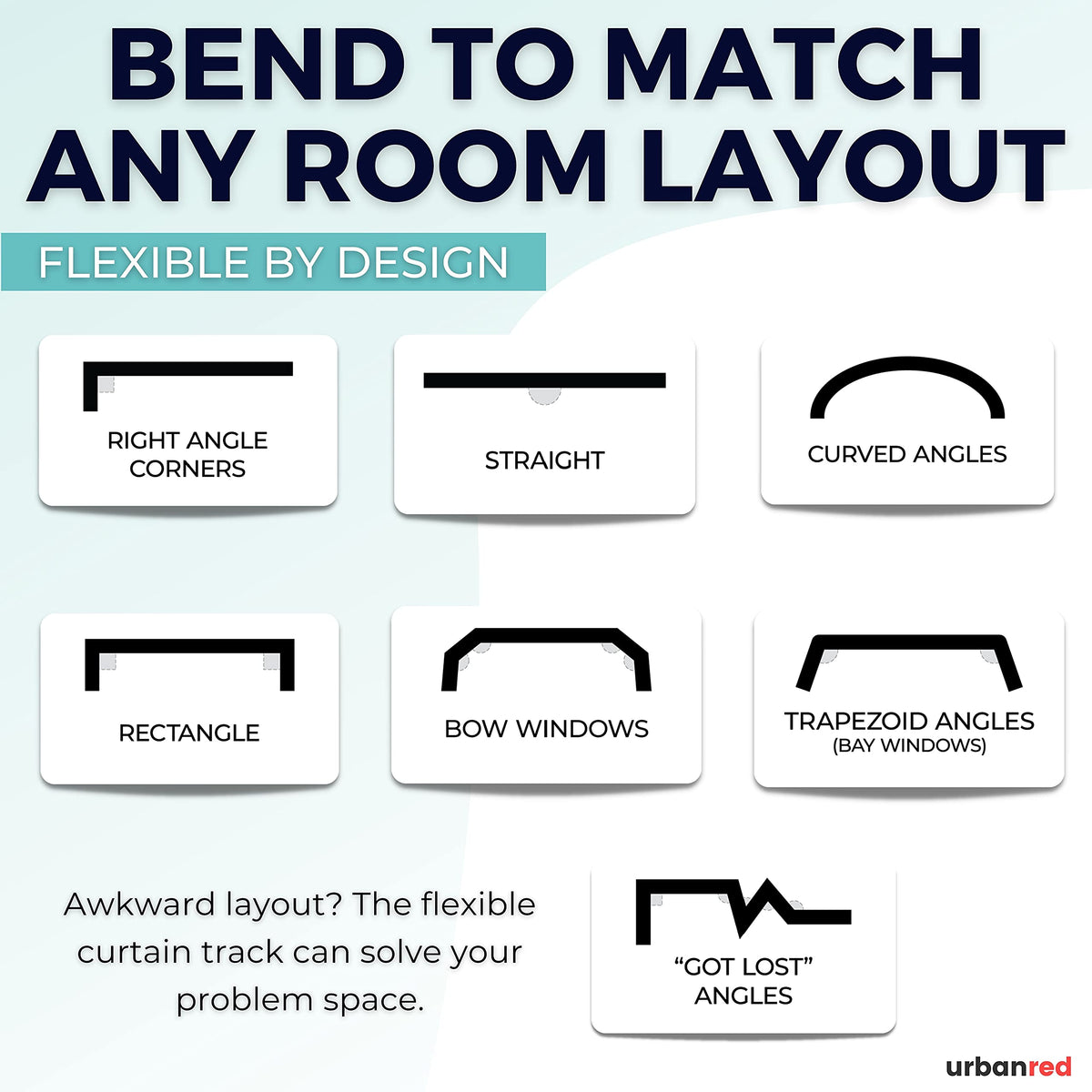 Q: Can this curtain track be used for curved spaces?A: Absolutely! The UrbanRed Flexible Ceiling Curtain Track is specifically designed to bend and twist, allowing it to adapt to curved spaces and various window shapes without any special tools.