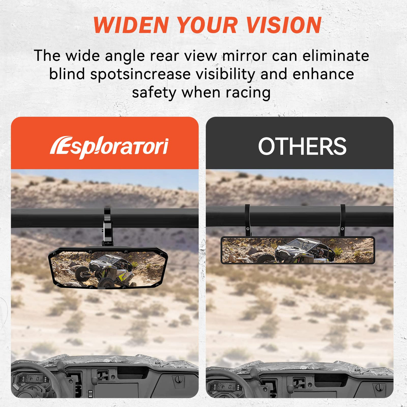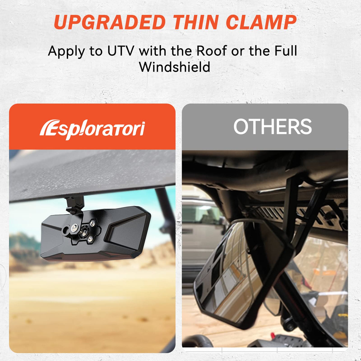 Utv Rear View Mirror, Esploratori Sxs Center Rearview Mirror With 1.5"-2" Adjustable Clamp Compatible With Polaris Rzr, Pioneer, Talon, Can Am Maverick X3, Kawasaki Teryx Mule, Arctic Cat Wildcat