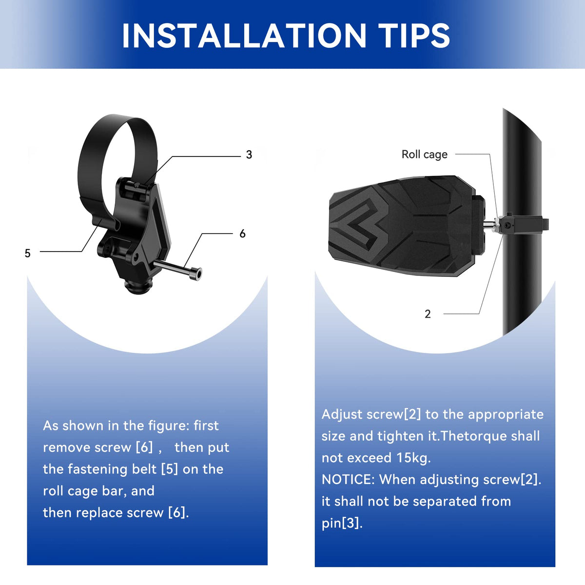 UTV Side Mirrors with 1.65'' -2'' Roll Bar, TXZSXS RZR Side Mirrors Compatible with Polaris RZR, Can Am Maverick X3, Kawasaki Te