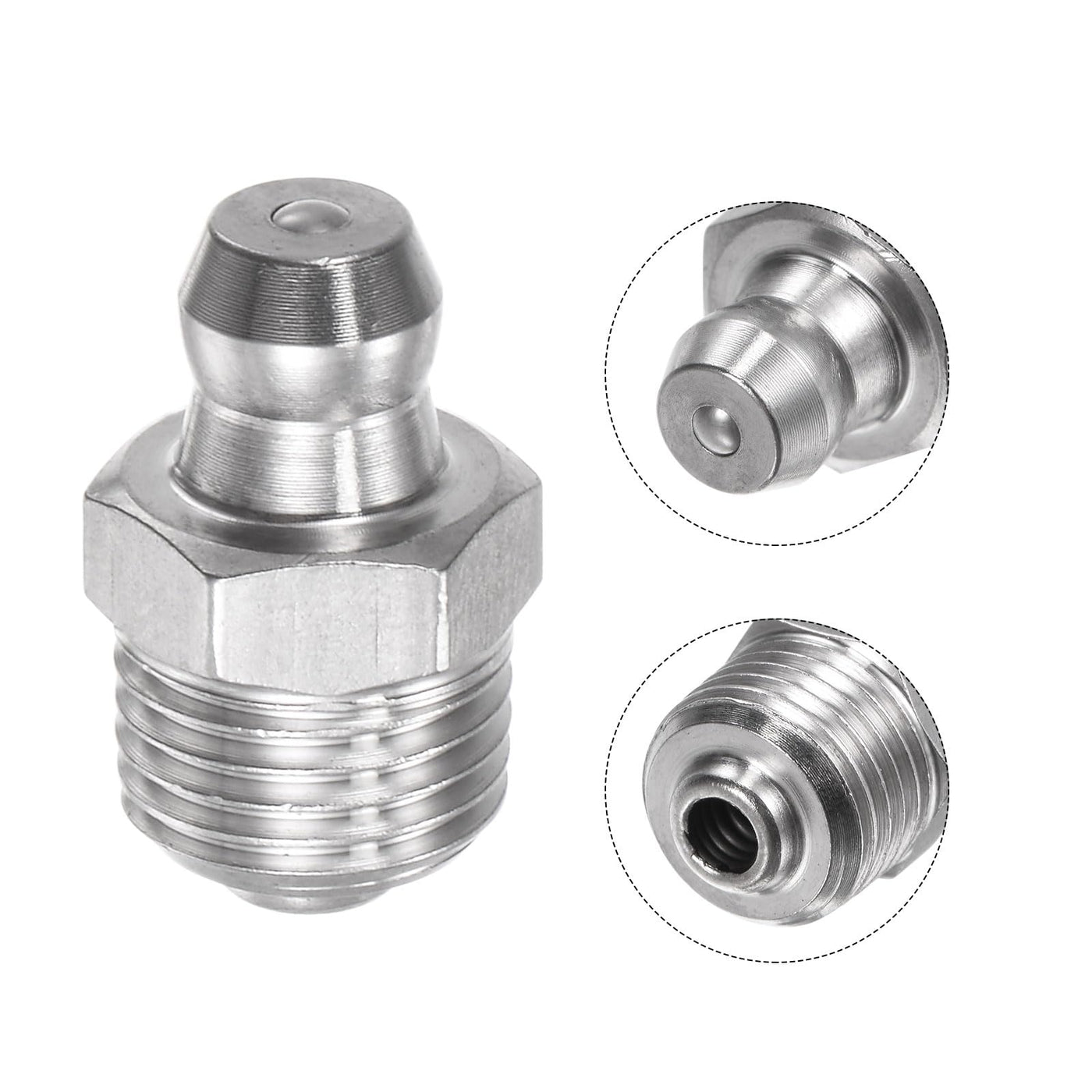 Features:1. The grease fittings are made of stainless steel, high hardness, rust-resistance, and oil spill-proof, ensuring a long service time.2. The grease fitting is the oil-filled inlet and is the easiest way to mechanically lubricate. A connection between the grease tube and the mechanical equipment.3. Suitable for most mechanical equipment and industrial applications.4. This grease fitting is a good replacement to replace your old grease fitting.5. The grease fitting is used in a bearing. Convenient for daily maintenance, and replacement operations are simple.Specifications:Thread Size: M10 x 1Material: 304 Stainless SteelHexagon Width: 10mm / 0.39inchTotal Height: 18mm / 0.71inchPackage Content:30 x Grease Fittings