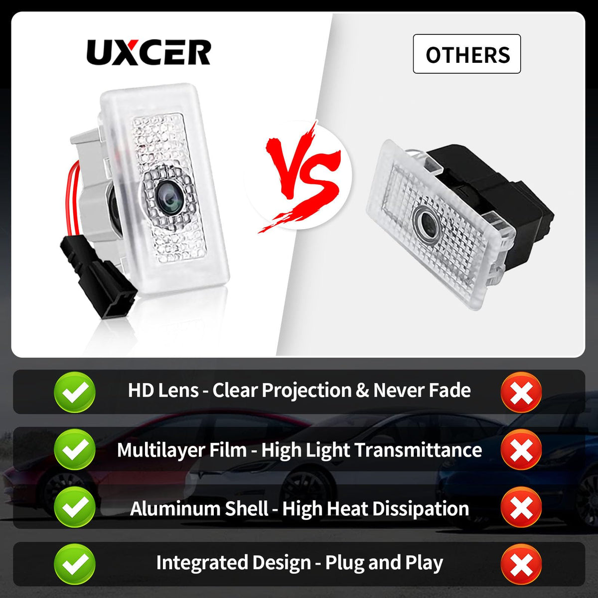 Uxcer 4Pcs Puddle Lights For Tesla Model 3/Y 2026 2025-2016, T-Logo With Letters Door Lights Logo Projector, Never Fade Led Proj