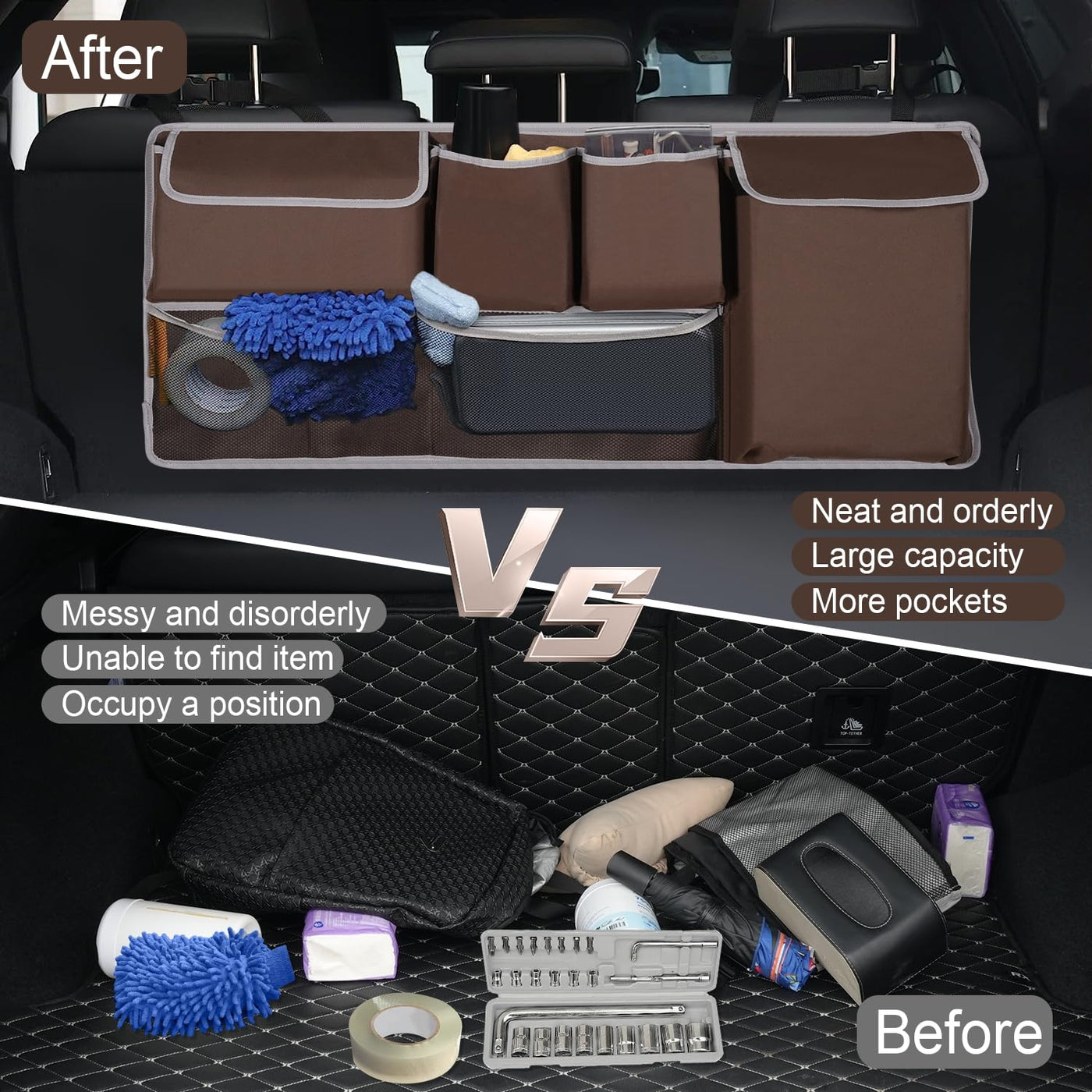 Uyye Trunk Hanging Organizer, Backseat Storage Bag, Collapsible Car Interior Accessories With 4 Pockets & 2 Mesh Pouches For Too