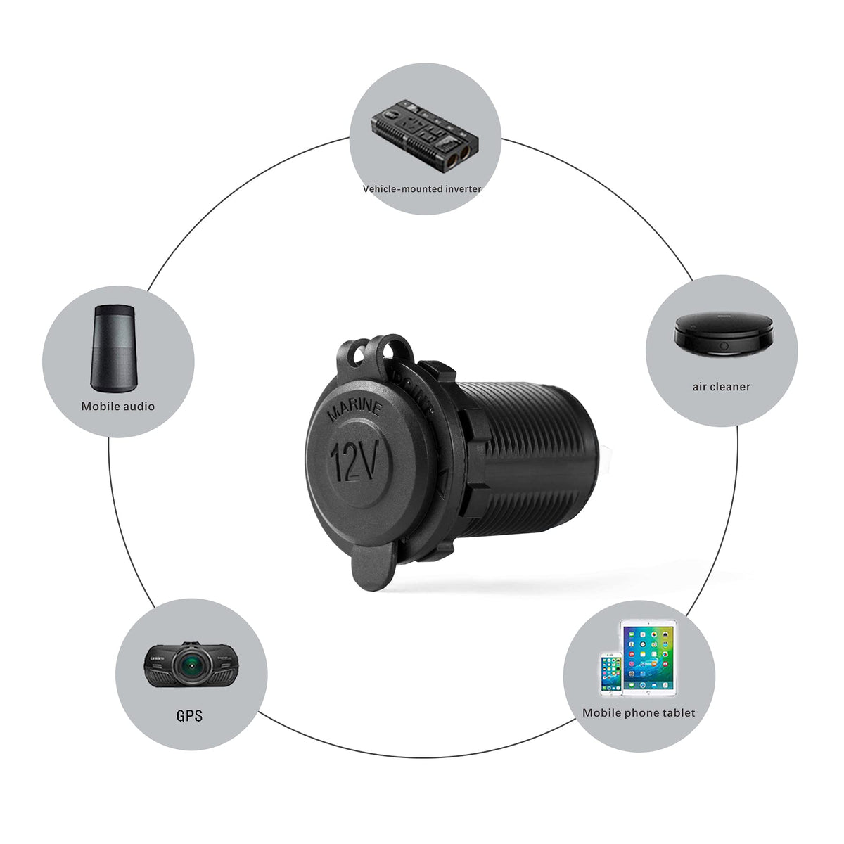 Uyye Universal 12V/27V Car Cigarette Lighter Socket, For Car Marine Motorcycle Atv Rv And More, Car Interior Accessories With Wa