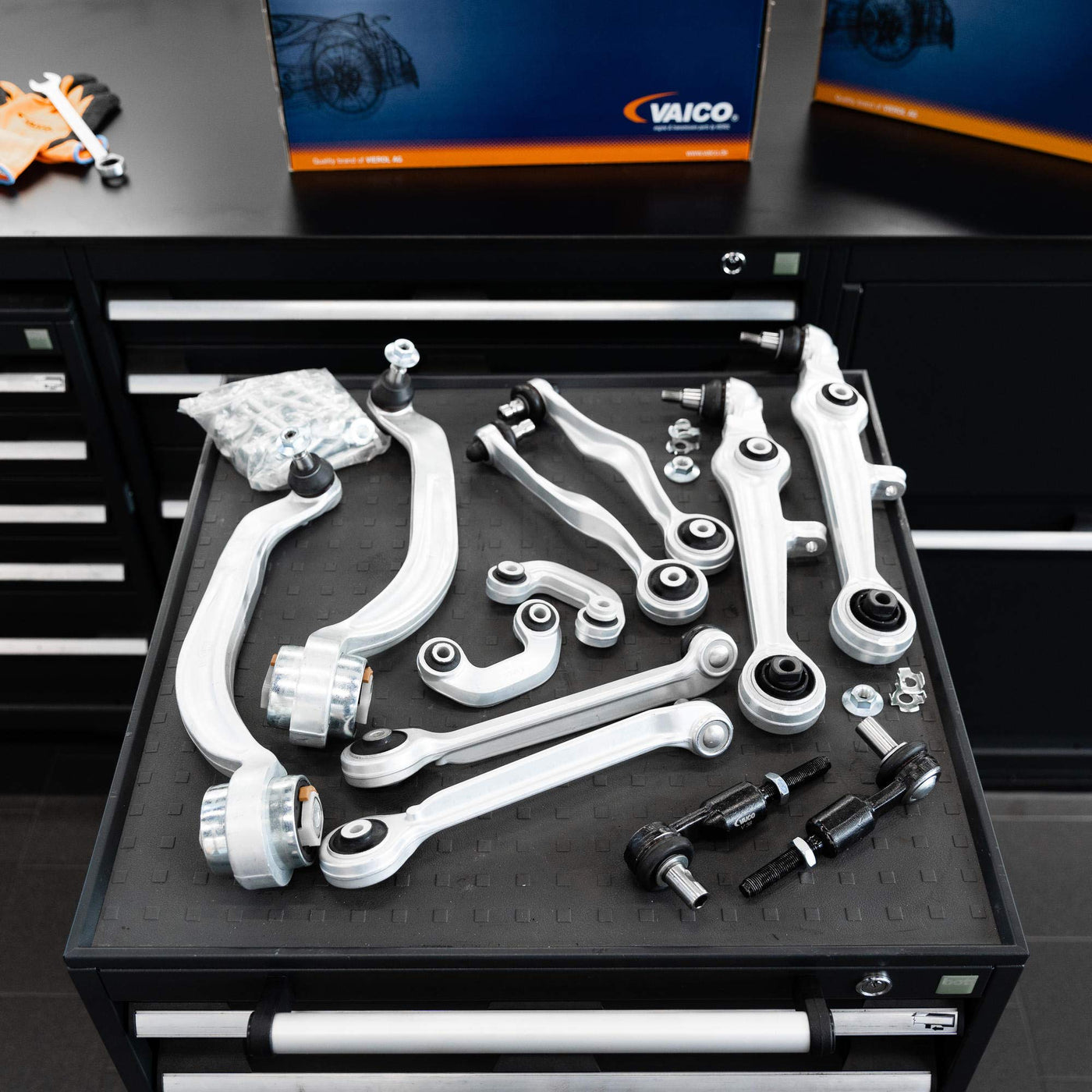 Q: How do I install the VAICO Control/Trailing Arm Kit?A: Installation of the VAICO Control/Trailing Arm Kit should be performed by a qualified technician. The process typically involves removing the old control arms, installing the new components, and aligning the suspension to ensure proper functionality and safety.