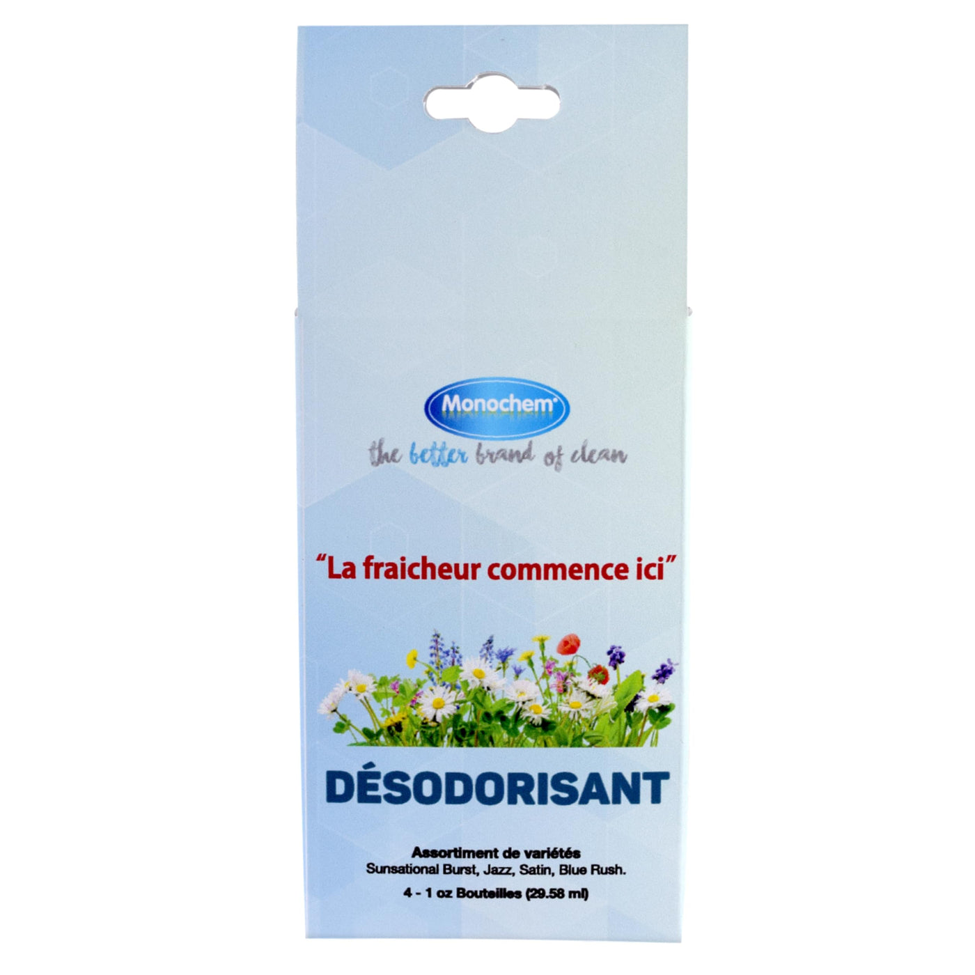 Convenient 1 oz. bottles. Long lasting perfume sprays provide an immediate fragrance burst to cover odors or can be used as a general air freshener. Perfect for use in your car, RV, Motorcoach, home, office or on the road wherever a “burst” of freshness is needed! Fragrances include Satin, Jazz, Blue Rush and Sunsational Burst.