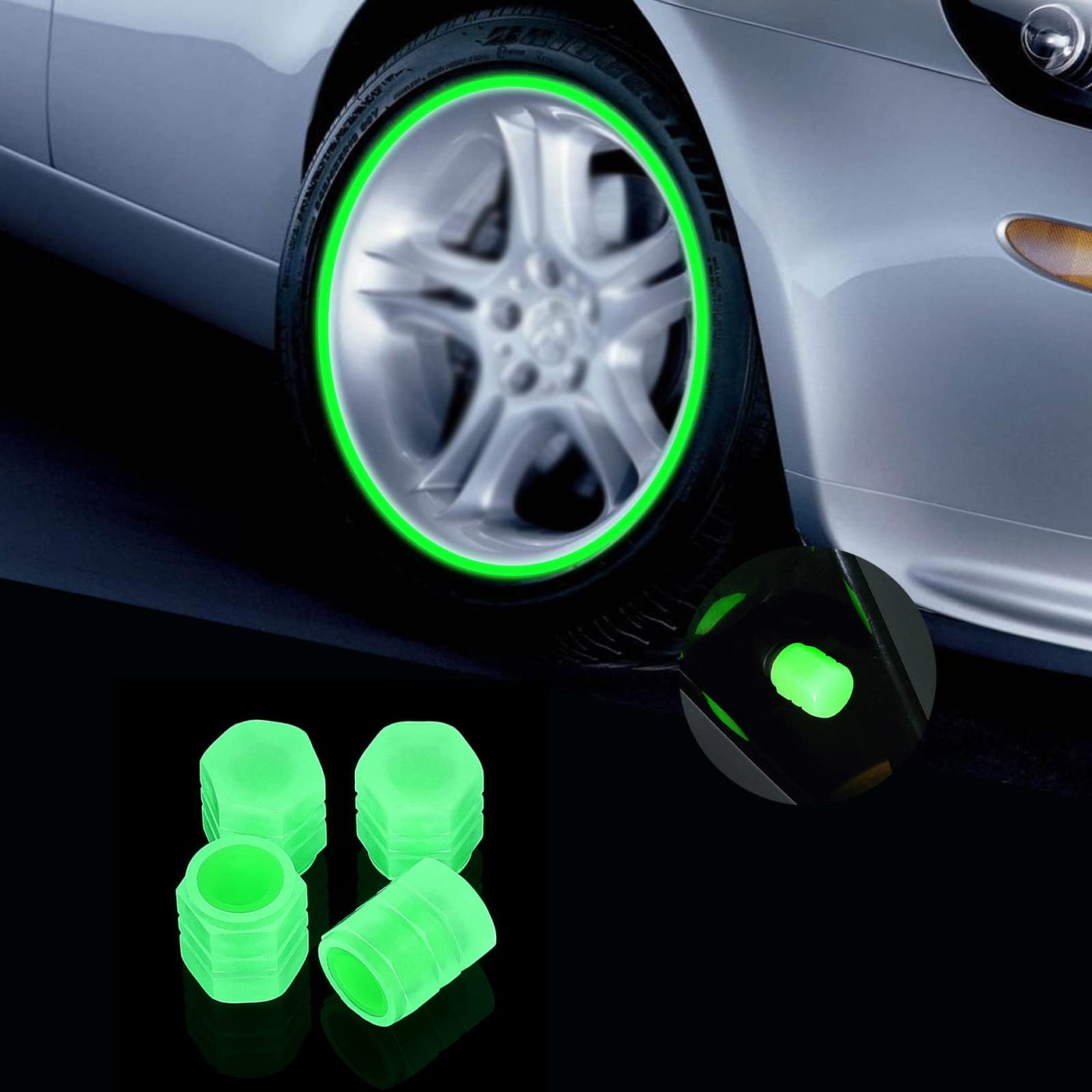 Q: What makes these Valve Stem Caps glow at night?A: The Valve Stem Caps are designed with luminous material that absorbs light during the day and glows at night, providing a stylish and unique appearance for your vehicle.