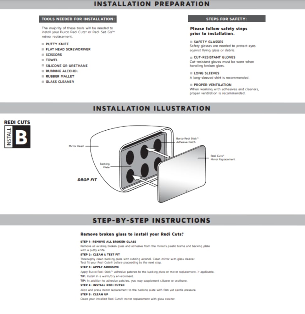 Q: How do I install the mirror glass lenses?A: Installation is quick and easy, as the product comes with sticky pads for adhesive attachment. Detailed installation instructions are provided on the box for your convenience.